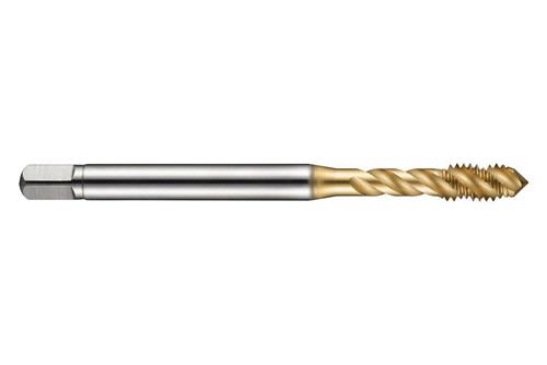 Spiral genuteter Gewindebohrer · Anschnittform C mit 2-3xP Gewindeanschnitt · ISO-Metrisches Gewinde M6 mit 1.00 mm Steigung und 6H Toleranzklasse · Abmessungen nach ISO 529 Standard mit 6.3mm Schaft und 5.0mm Vierkantantrieb · HSSE-PM mit TiN Beschichtung und 45° Helixwinkel 2.5xD Sacklochgewinde in Baustahl · Kohlenstoffstahl und legierter · Ferritischer · Martensitischer und Austenitischer Edelstahl und Aluminiumguss Weitere technische Eigenschaften: · Schneidrichtung: Rechts · Schaft-Ø: 6.3 · Einspannlänge - Metrisch (LSC): 8 · Schaft: Zylindrischer Schaft mit Vierkant