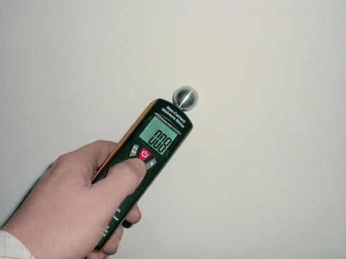 zur Feuchtemessung von Holz und Baustoffen · einfach das Messobjekt mit der Messkugel berühren · misst bis zu einer Tiefe von 40 mm · Max./Min.-Funktion · Messprinzip kapazitiv · inkl. 9 V Blockbatterie