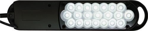 Metall/Kunststoff Leuchtenkopf und Arm vielseitig verstellbar Armlänge unten 330 mm - oben 340 mm - Höhe max. 450 mm (mit Standfuß), Höhe max. 420 mm (mit Tischklemme) Betriebsspannung 220-240 V mit 21 LEDs, tageslichtweiß (5.800 Kelvin) gewichteter Energieverbrauch 9 kWh/1000 h diese Leuchte enthält eingebaute LED-Lampen die Lampen können nicht ausgetauscht werden