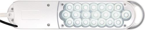 Metall/Kunststoff Leuchtenkopf und Arm vielseitig verstellbar Armlänge unten 330 mm - oben 340 mm - Höhe max. 450 mm (5.800 Kelvin) Betriebsspannung 220-240 V mit 21 LEDs, tageslichtweiß gewichteter Energieverbrauch 9 kWh/1000 h diese Leuchte enthält eingebaute LED-Lampen die Lampen können nicht ausgetauscht werden