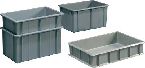 aus Polyethylen hochbelastbar und ausgestattet mit extra-stabilisierenden Stapelrippen glatte Innenflächen, leicht zu reinigen lebensmittelecht temperaturbeständig von -20 °C bis +90 °C Farbe grau Art.-Nr. 9000 450 320 naturfarben