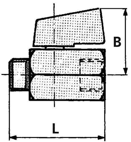 Sandgestrahlte Ausführung Weitere technische Eigenschaften: · B: 28,0mm · L: 39,5mm · Spindelabdichtung: EPDM · Kugeldichtung: PTFE