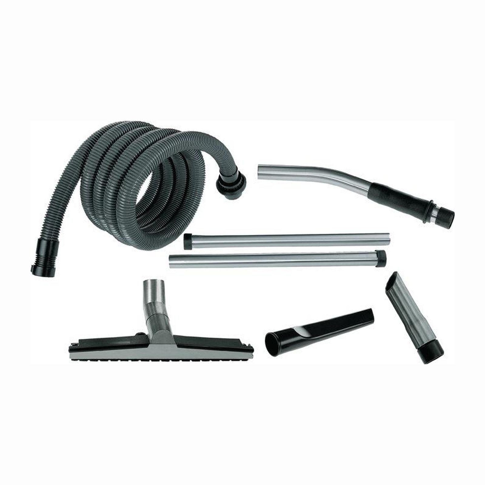 Werkstatt 6-teilig DN 36 mm für alle Sauger ausgenommen Sicherheitssauger bestehend aus: Universal-Saugschlauch 4,0 m mit Quicksystem, gebogenes Edelstahl-Handrohr, Verlängerungsrohr Edelstahl 2 x 0,5 m, Kunststoff Profi-Bodendüse 360 mm, Kunststoff Fugendüse 300 mm, Gummi Schrägrohrdüse 190 mm Inhalt: 6-teilig Marke: NILFISK Ausführung: Werkstatt, DN 36 mm