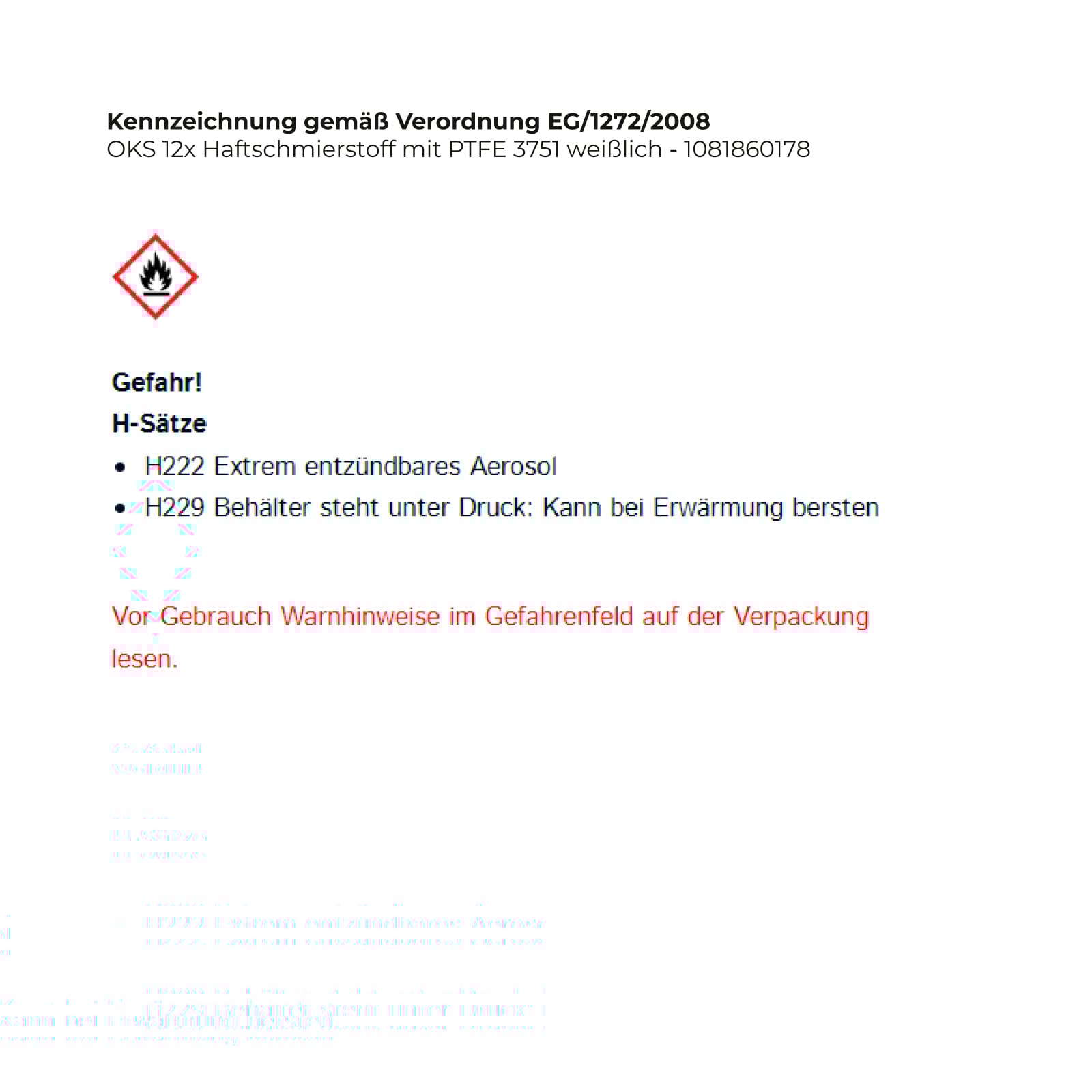 Merkmale Farbe: weißlich Temperatur: -35 bis +180°C Gebinde: Spraydose Inhalt: 400 ml Marke: OKS Zulassung: NSF H1