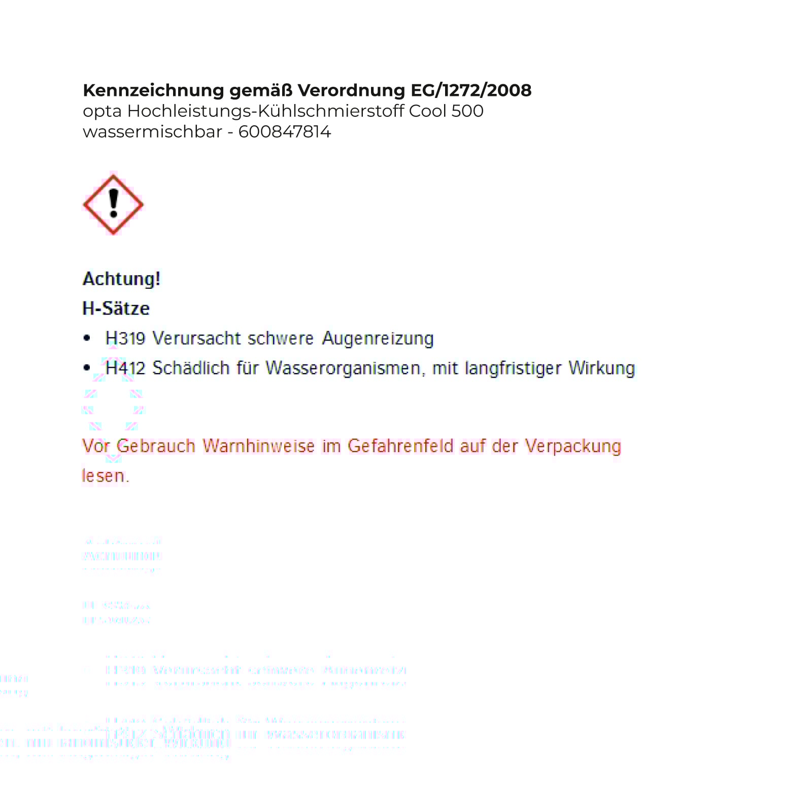 - H412 Schädlich für Wasserorganismen, mit langfristiger Wirkung