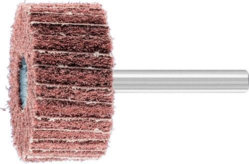 - Anordnung des Vliesmaterials radial in Lamellenform, wobei sich zwischen den Lamellen jeweils ein Schleifgewebe befindet, dadurch höherer Materialabtrag und ein gröberes Schliffbild