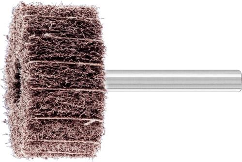 - Anordnung des Vliesmaterials radial in Lamellenform, wobei sich zwischen den Lamellen jeweils ein Schleifgewebe befindet, dadurch höherer Materialabtrag und ein gröberes Schliffbild