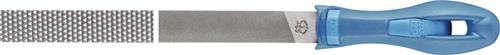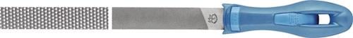 mit Ergonomie-Feilenheft Form A Vorderseite Kreuzhieb zum Schruppen Rückseite Raspelhieb zum Raspeln eine gehauene Kante zum Entgraten, Erzeugen von Durchbrüchen, Flächenbearbeitung und Kantenbearbeitung von Stahl, NE-Metall (weich), Holz und Kunststoff hoher Griffkomfort kein Wegrollen der Feile