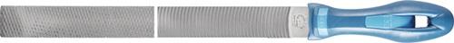 mit Ergonomie-Feilenheft schräg verzahnte Vorderseite mit Spanbrecher, radial verzahnte Rückseite, Kanten nicht verzahnt für Entgraten, Kantenbearbeitung, Flächenbearbeitung, Schruppen von verschiedensten Materialien geeignet, auch für Kunstharzfüllstoffe oder Holz mit eingeschlagenen Nägeln, sowie Stähle bis 1.200N/mm² und Stahlguss, oder zur Löhtnahtbearbeitung kein Wegrollen der Feile Länge: 250 mm Querschnitt: 24 x 6,2 mm Hieb: radial 1 / schräg 2 Heft: 2K-Ergo Werkstoffeignung Aluminium: sehr gut geeignet Werkstoffeignung Stahl: sehr gut geeignet Marke: PFERD Zahnung: radial 1 / schräg 2
