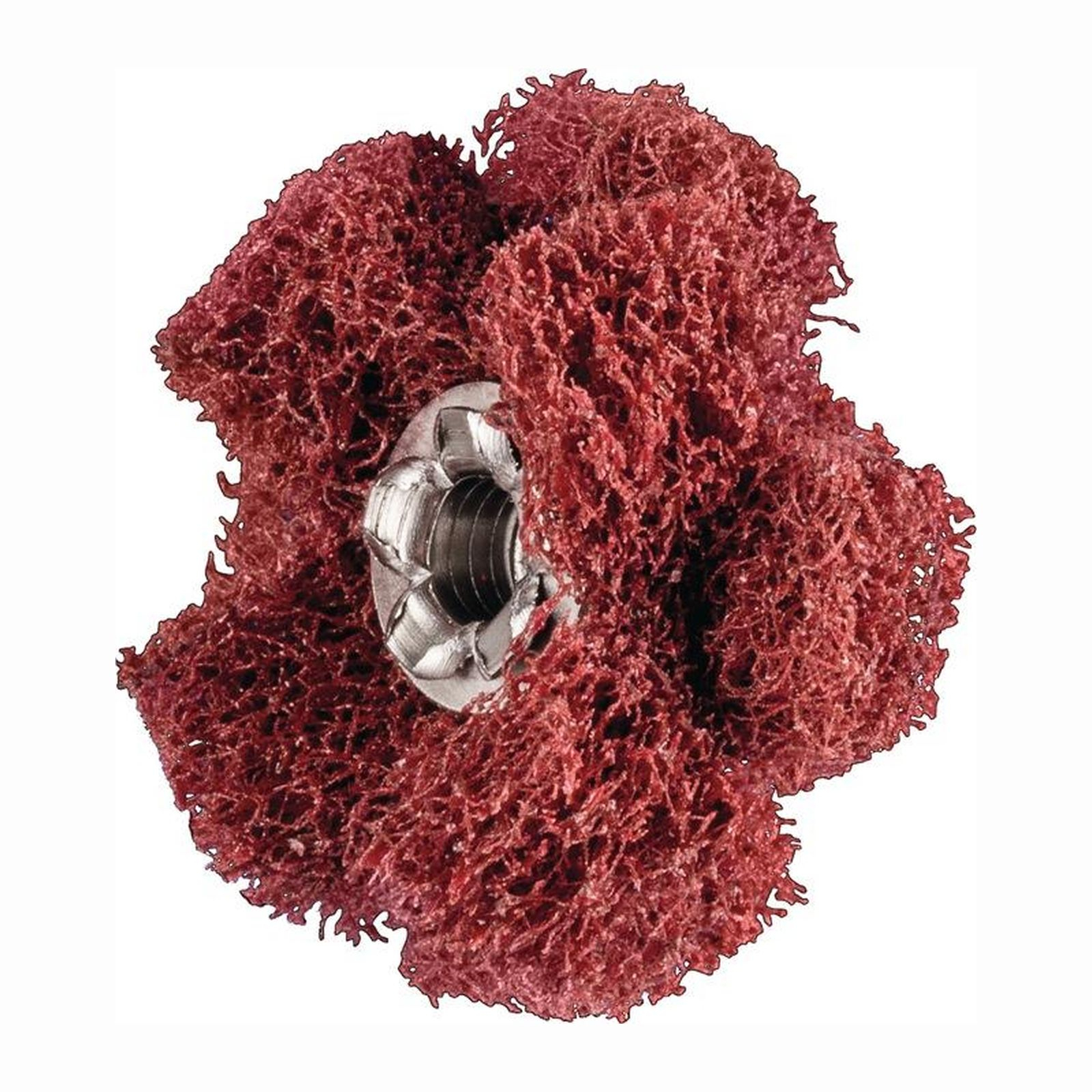 - das Schleifvlies ist sternförmig in Lagen übereinander gelegt und im Zentrum miteinander verbunden