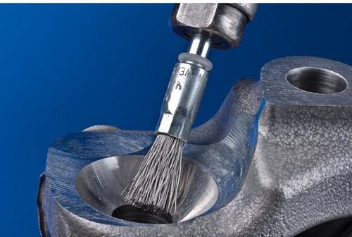 für leichte Bürstarbeiten wie Entgraten, Reinigen und Entrosten · das Besatzmaterial Stahldraht verfügt über eine hohe Zug- und Biegewechselfestigkeit · gewährleistet eine optimale Abnutzung des Drahtes sowie eine hohe Standzeit, auch bei extremen Bürstanwendungen. Stahldraht hält Temperaturen bis 300 °C stand. Schaft-Ø 6 mm Weitere technische Eigenschaften: · Antriebsart: Geradschleifer, Bohrmaschine, Biegwellenantrieb · Anwendungsempfehlung: Bitte beachten Sie die empfohlenen Drehzahlen. Für beste Leistung Werkzeugantrieb mit mindestens 300 Watt verwenden. · Bearbeitbare Werkstoffe: Gusseisen, Elastomere, Stahl, Stahlguss, Holz · Bearbeitungsaufgaben: Entrosten, Aufrauen, Entlacken, Oxydschichten entfernen, Entgraten, Reinigen · Besatzmaterial: Stahldraht (ST) · Ø Schaft: 6mm · Ø Topf: 10mm · RPM, opt., bis: 15000RPM · RPM, opt., von: 10000RPM · Sicherheitshinweise: Beim Einspannen der Bürste ist darauf zu achten, dass der Schaft möglichst weit in die Aufnahme eingespannt wird. Dies gilt insbesondere für den Einsatz im hohen Drehzahlbereich. Die Mindesteinspannlänge beträgt 10 mm. · Verpackungen: Industrieverpackung · Vorteile: Erzeugt feine Oberflächen. Lange Standzeit durch die Verwendung von PFERD-Spezialdraht. Optimales Erreichen von schwer zugänglichen Stellen wie Bohrungen und Hohlräume durch Aufspreizen des Besatzes bei Rotation.
