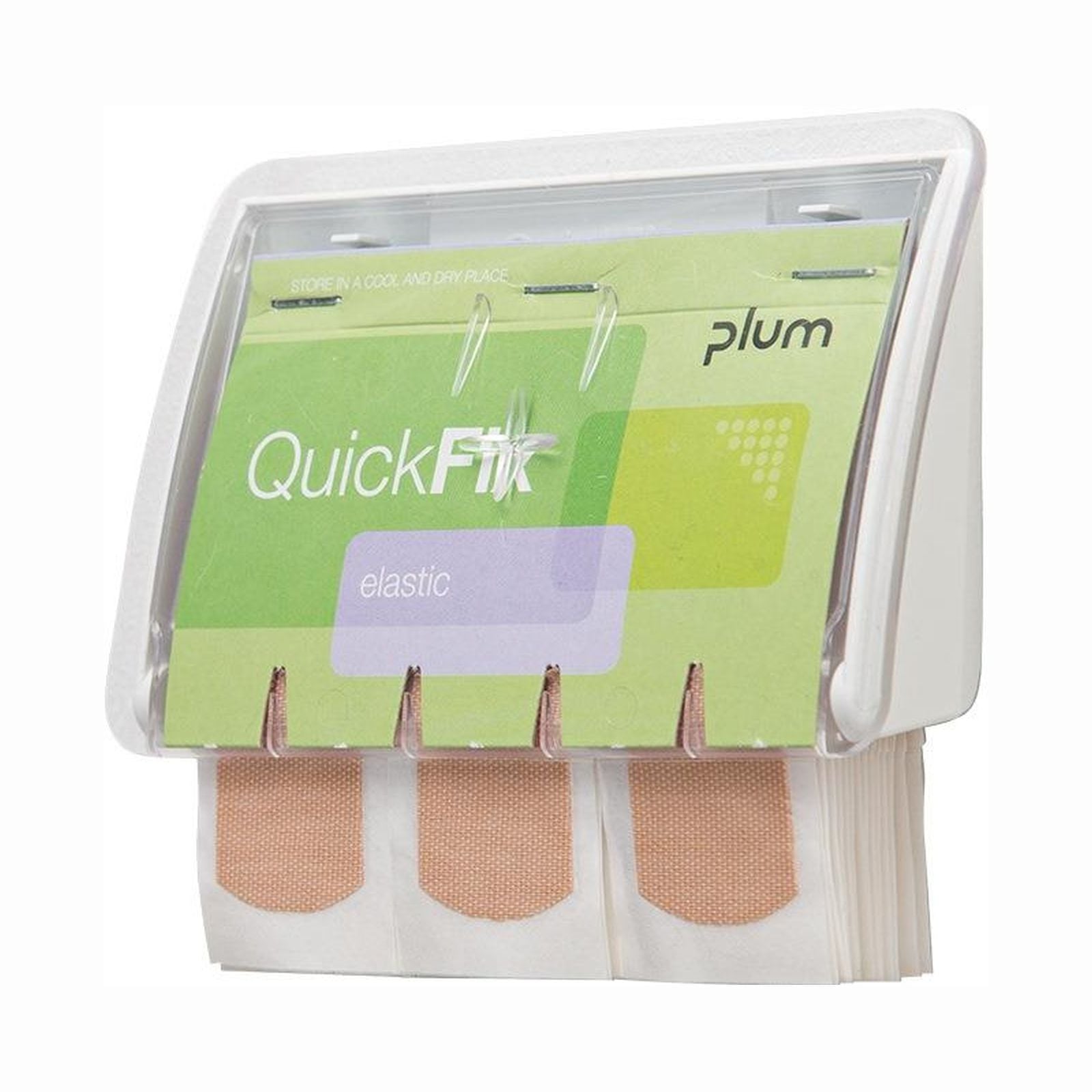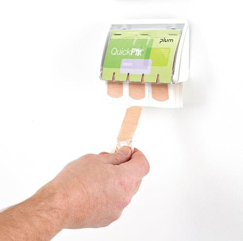 formschöner transparenter Spender befüllt mit 45 elastischen Textilgewebepflastern die Pflaster entpacken sich bei Herausziehen aus dem Spender von selbst und können sofort angewendet werden der Pflasterspender kann wahlweise angeschraubt oder auch mit Klebestreifen befestigt werden durch die kleinen Abmessungen ist die Anbringung an nahezu jeder gewünschten Stelle möglich kann mit allen Refills aus dem QuickFix Sortiment nachgefüllt werden