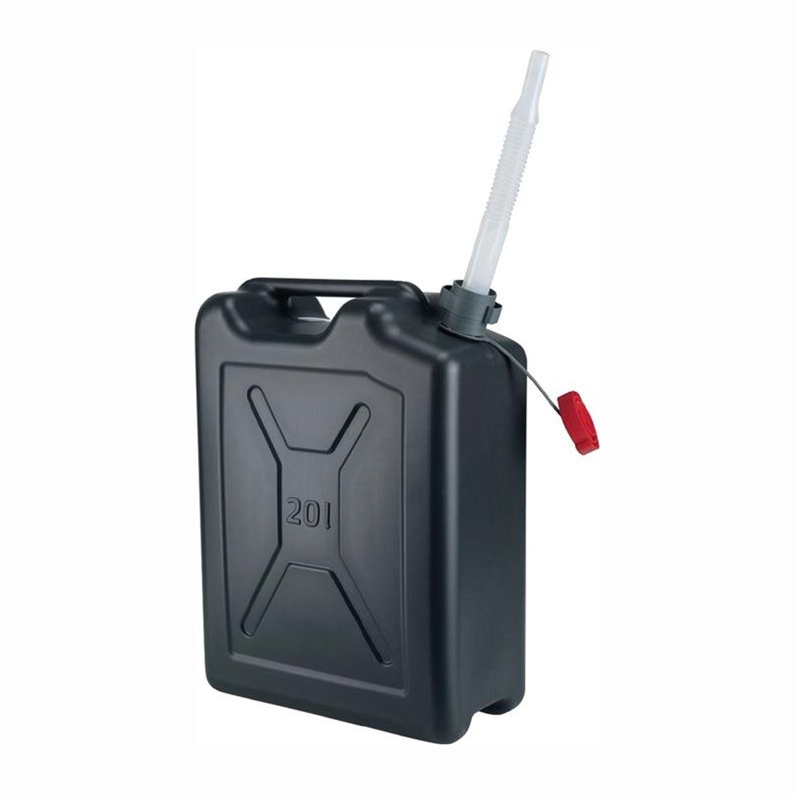 aus HD-Polyethylen mit hoher Dichte BAM, UN-Zulassung mit Flexauslauf Auslaufrohr mit integrierter Entlüftung Militärkanister konform Inhalt: 20 l Farbe: schwarz Breite: 175 mm Länge: 350 mm Marke: PRESSOL Material: HDPE Höhe: 480 mm