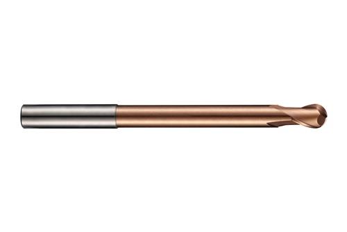 Extra kurzer kugelfräser mit 2 Schneiden · Durchmesser 3mm mit 5mm Schnittlänge · 100mm Gesamtlänge · 30mm erreichbare Lämge mit Halsfreischliff und 1.5mm Vollprofilradius · gemäß DORMER Standard mit einem 6mm Zylinderschaft · VHM mit TiSiN Beschichtung · 30° Helix und -10° Spanwinkel zum Kopierfräsen in gehärtete Materialien Weitere technische Eigenschaften: · Schafttoleranz: h6 · Drallwinkel: 30