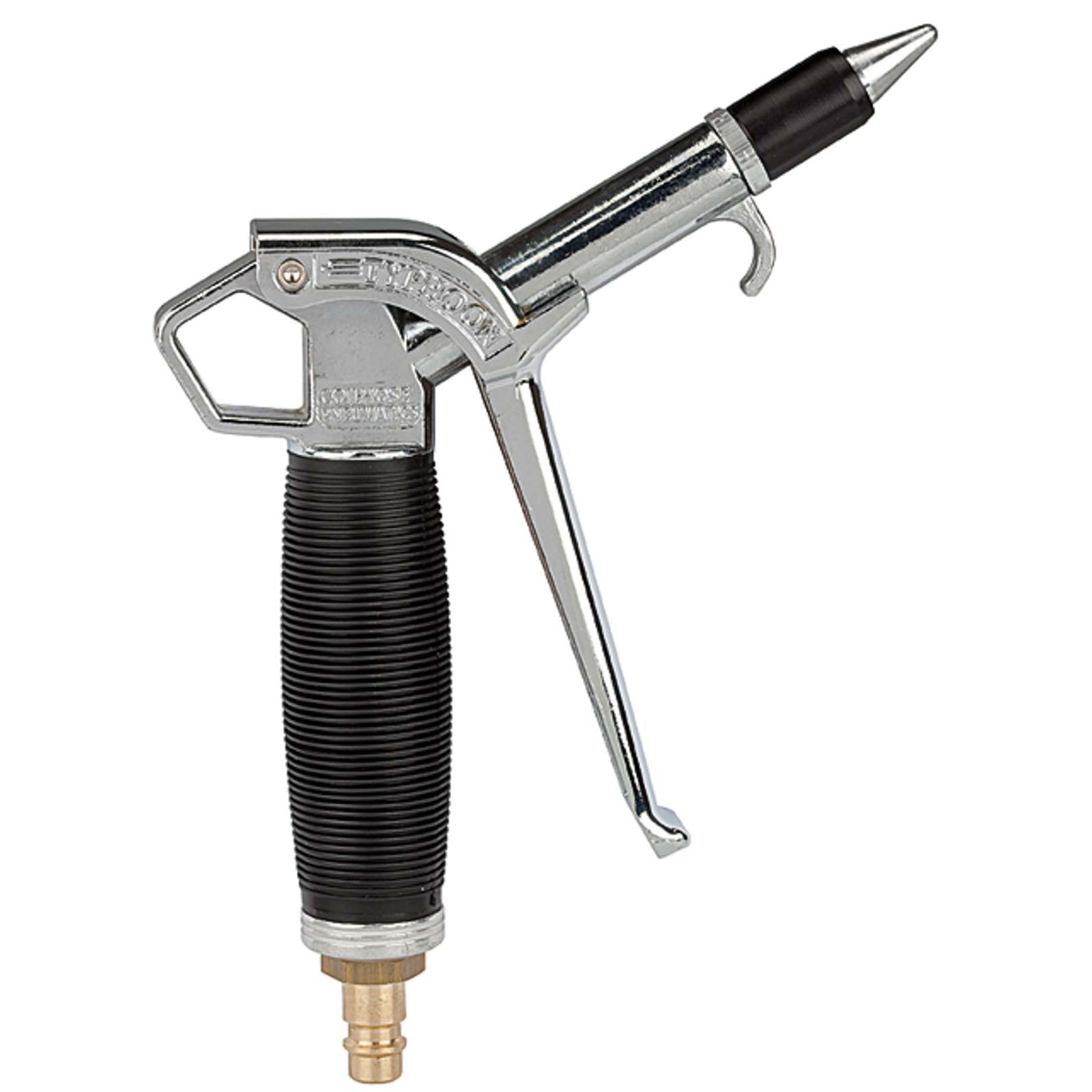 - Gegenüber herkömmlichen Standardpistolen hat die Typhoon eine ca. 3-fach höhere Blasleistung und liegt auch bei voller Druckbeaufschlagung leicht und sicher in der Hand. Zum Ausblasen von schwer zugänglichen Stellen sind Verlängerungsrohre lieferbar.