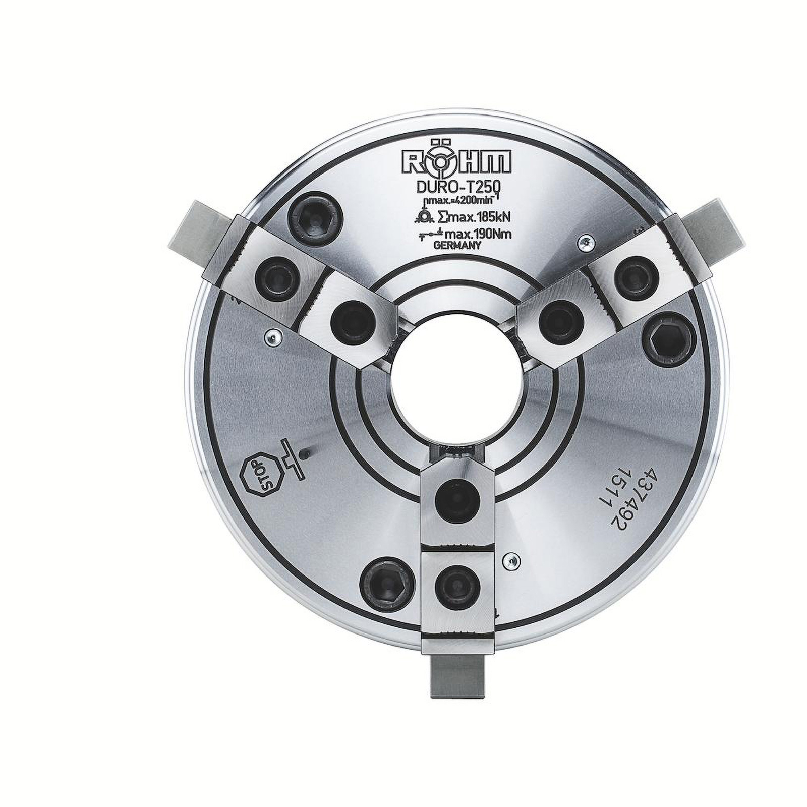 "Röhm DURO-T 200, 3-Backen, Zylindrische Zentrieraufnahme, Grund- und Aufsatzbacken - 437491"