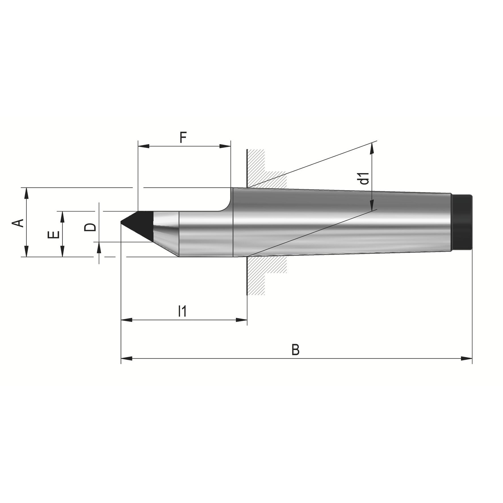 - Feste Zentrierspitzen, Aufnahme MK 2, DIN 806, halbe Spitze, nur geschliffen Mit Hartmetalleinsatz