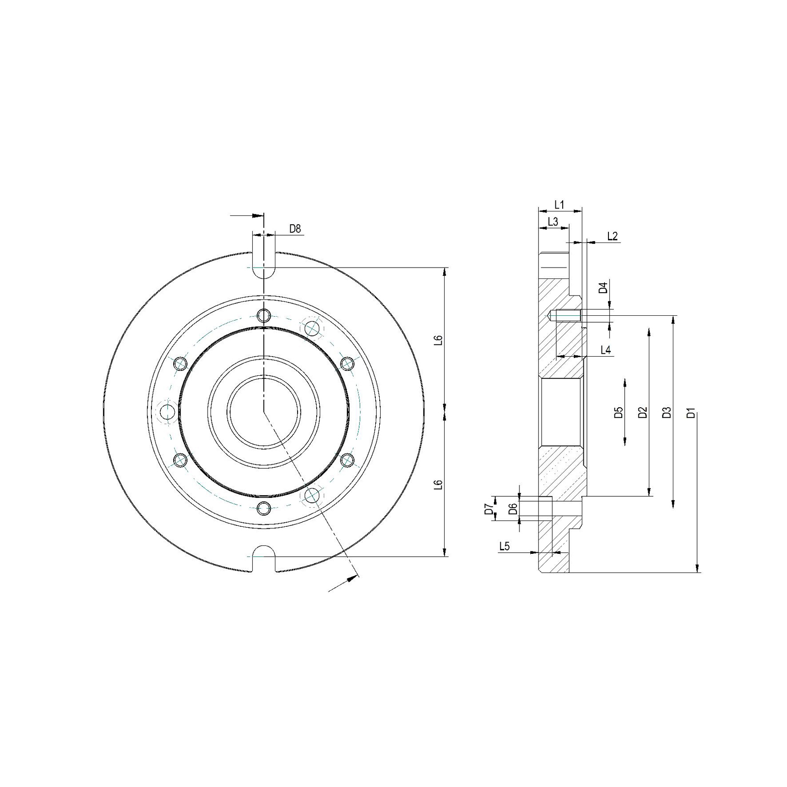 - Grundplatte, Größe 250, für Drehfutter mit zylindrischer Zentrieraufnahme DIN 6350