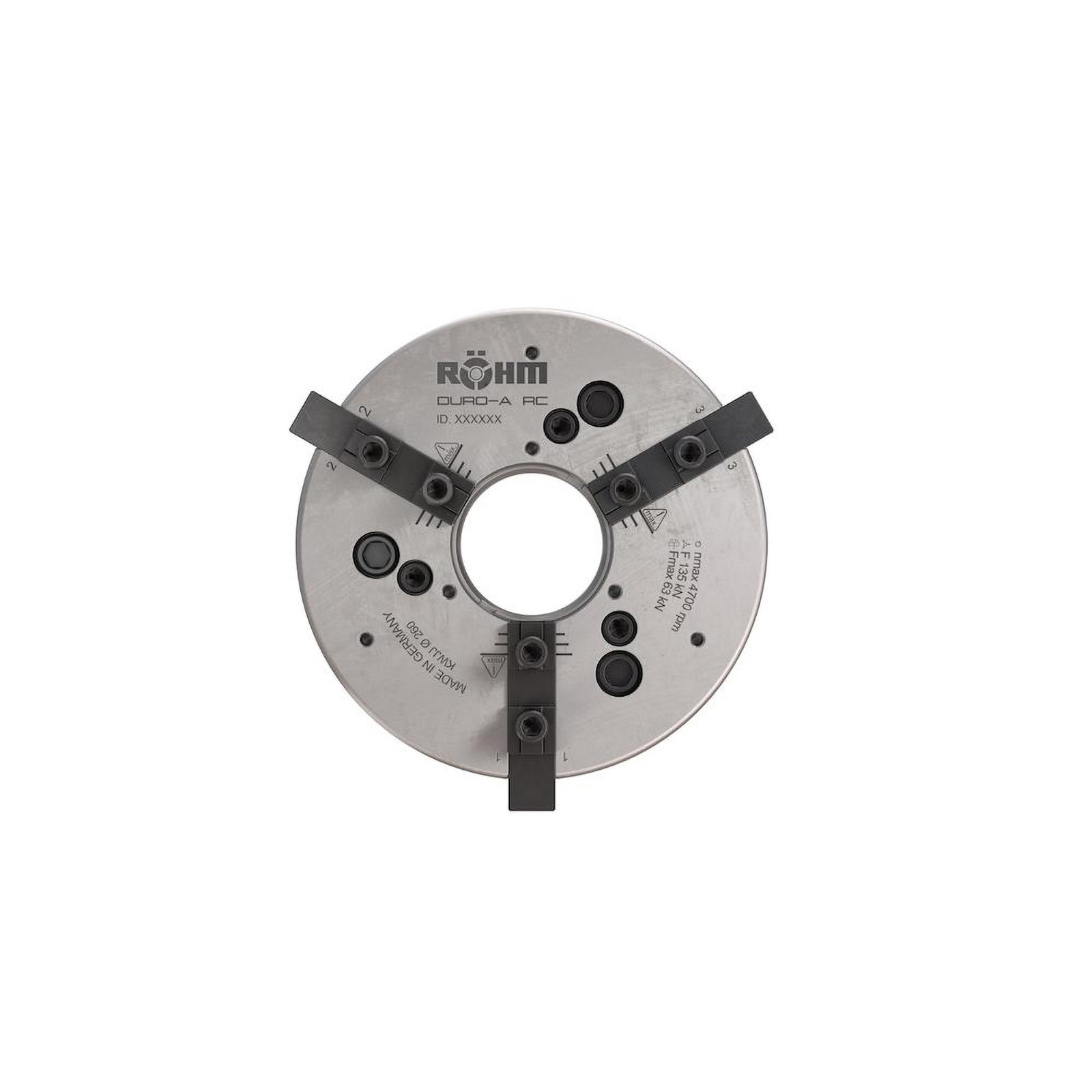 Das Duro-A RC ist ein Dreibackenfutter mit Durchgang und Backenschnellwechselsystem, das automatisch, d.h. hydraulisch von einer CNC-Maschine, gespannt werden kann. RC steht für RapidChange – Schnellwechsel, A für automatisch.Technische Merkmale: