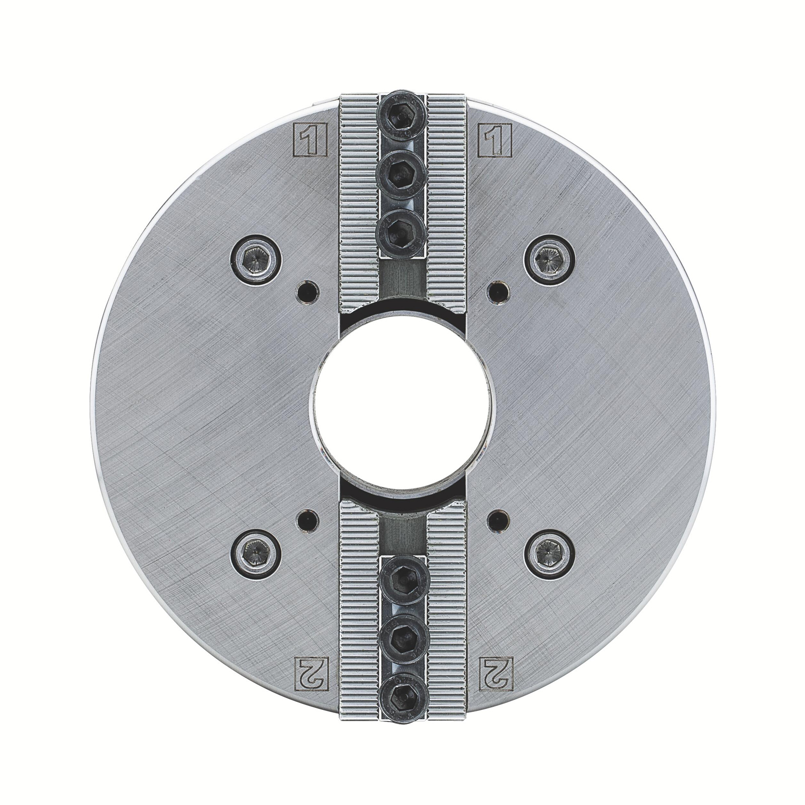 - Schnelles Umrüsten auf eine andere Spindelaufnahme durch einfaches Auswechseln des Zentrierflansches