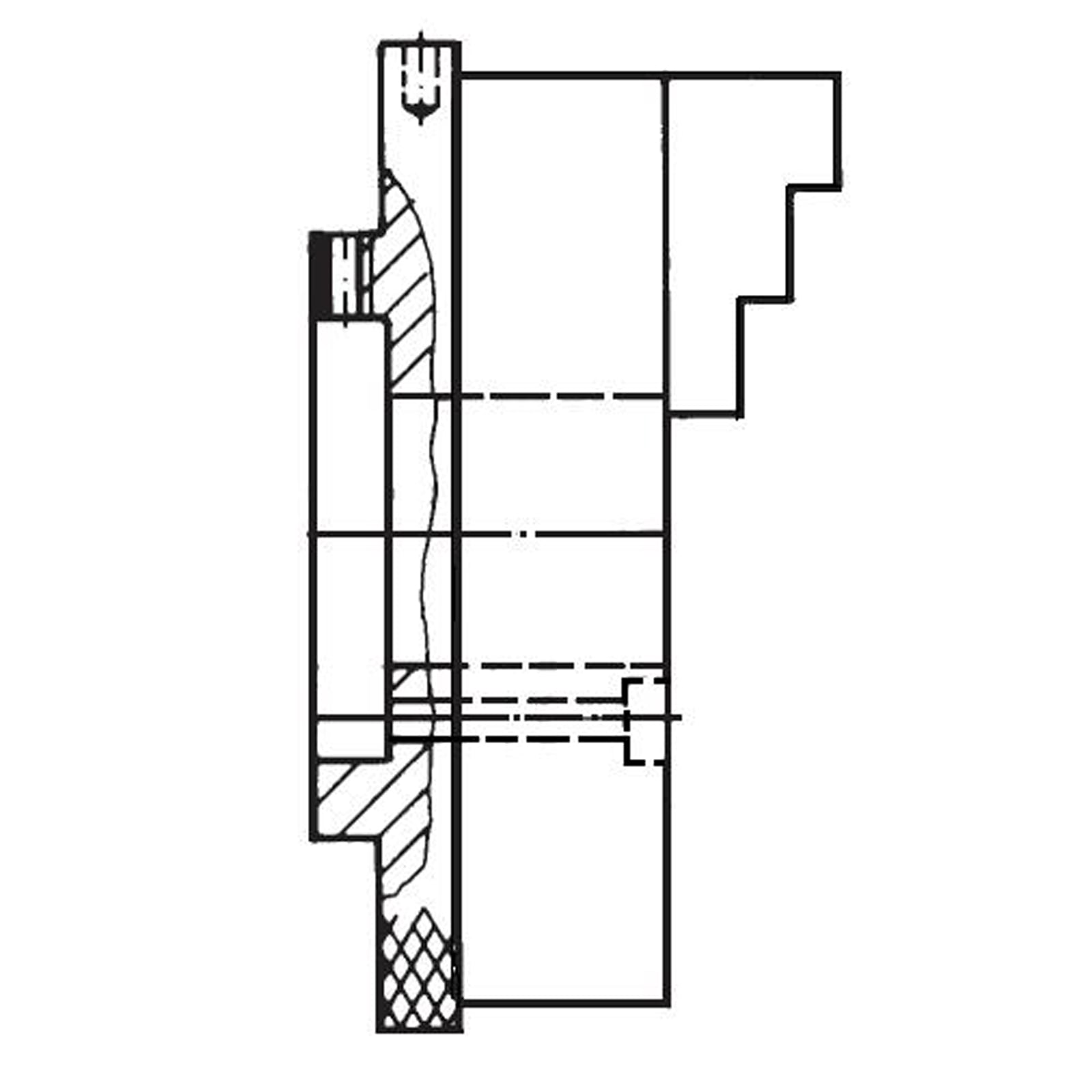- Kranzspannfutter KRF, Größe 70, 3-Backen, mit Spannstift, mit Bohr- und Drehbacken, Zylindrische Zentrieraufnahme, Gusskörper