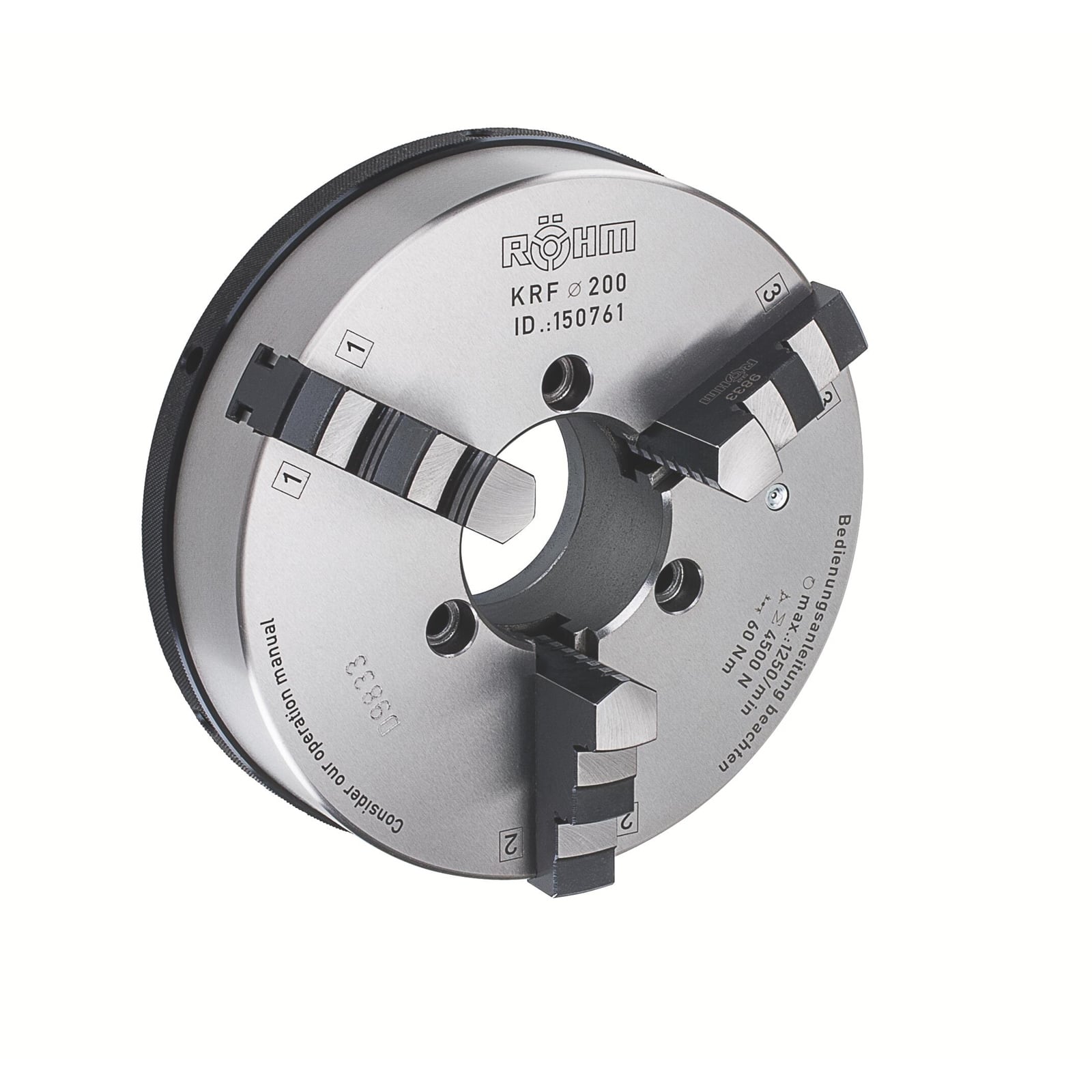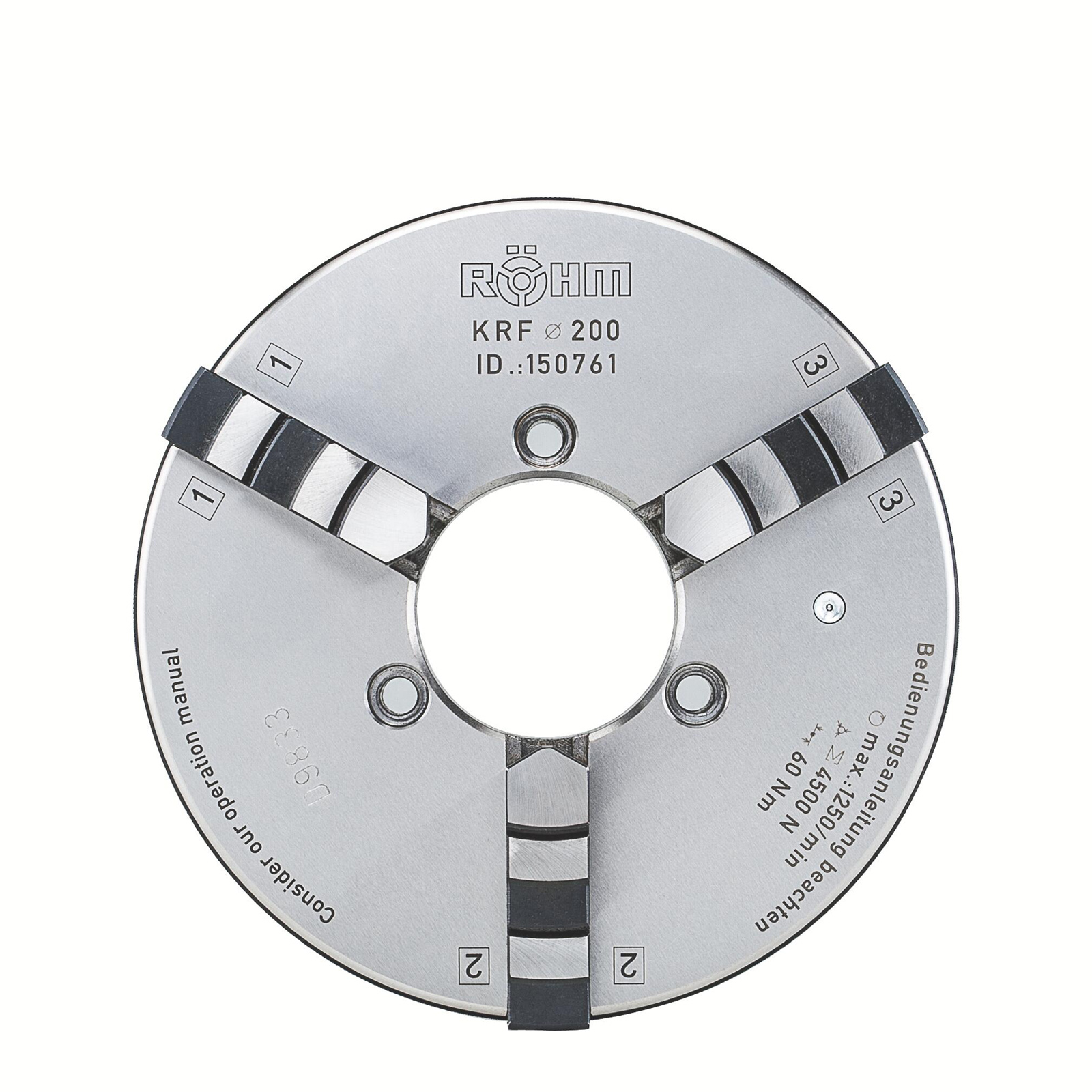 - 1x Röhm KRF 70, 3-Backen, mit Spannstift, Zylindrische Zentrieraufnahme, Gusskörper