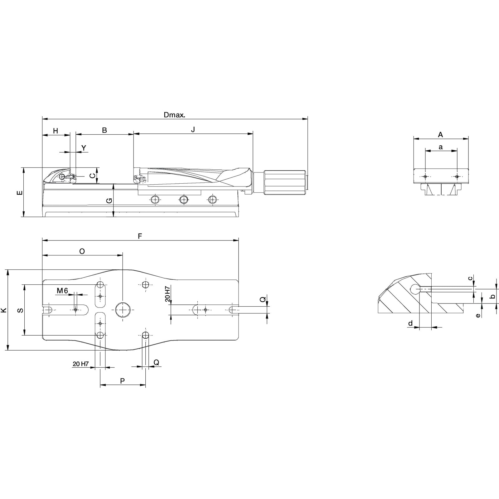 - Grundfläche mit Längsnuten (20H7) für genaue Fixierung auf Maschinentischen