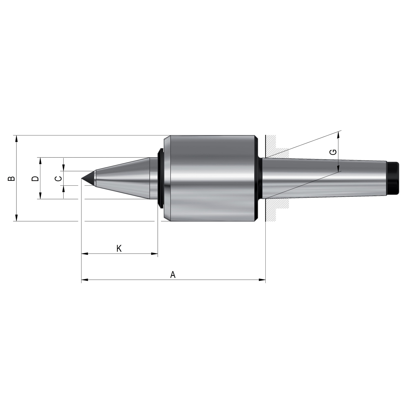 - Mitlaufende Zentrierspitzen - Spitzenwinkel 60°, Aufnahme MK 2, Größe 752, verlängerte NC-Spitze mit Hartmetall-Einsatz, leistungsstark, für kleine und mittelgroße Werkstücke