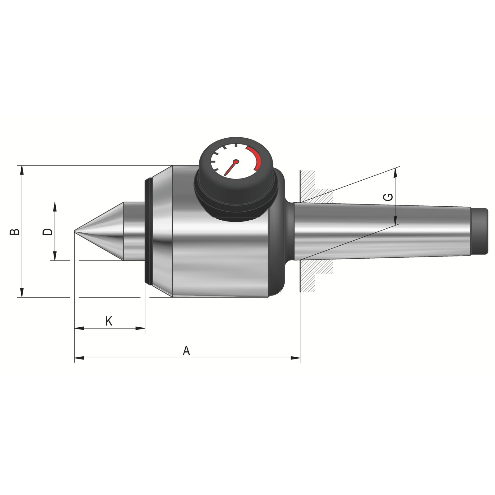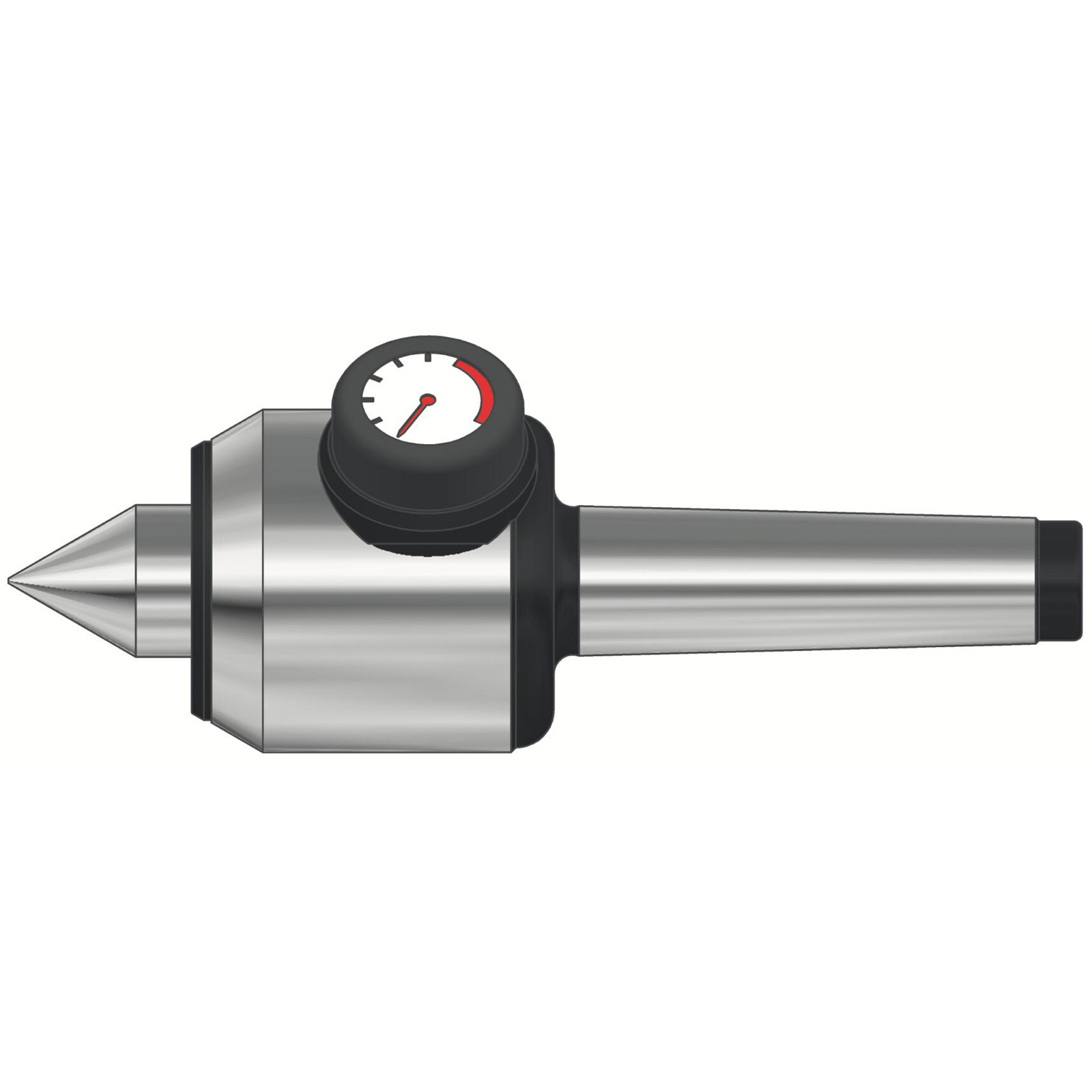 - Mitlaufende Zentrierspitzen - Spitzenwinkel 60°, Aufnahme MK 5, Größe 505, AC mit Druckanzeige und Längenausgleich als Gegenspitze zu Stirnseitenmitnehmern