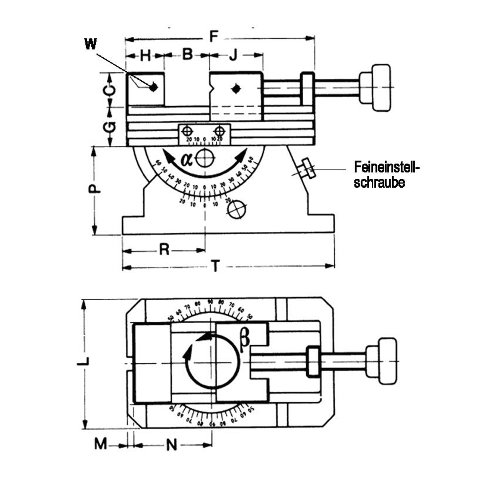 - 2-dimensionale Winkeleinstellung über Nonius, bei Größe 1 mit 3’-Nonius, bei Größe 2 mit 5’-Nonius.
