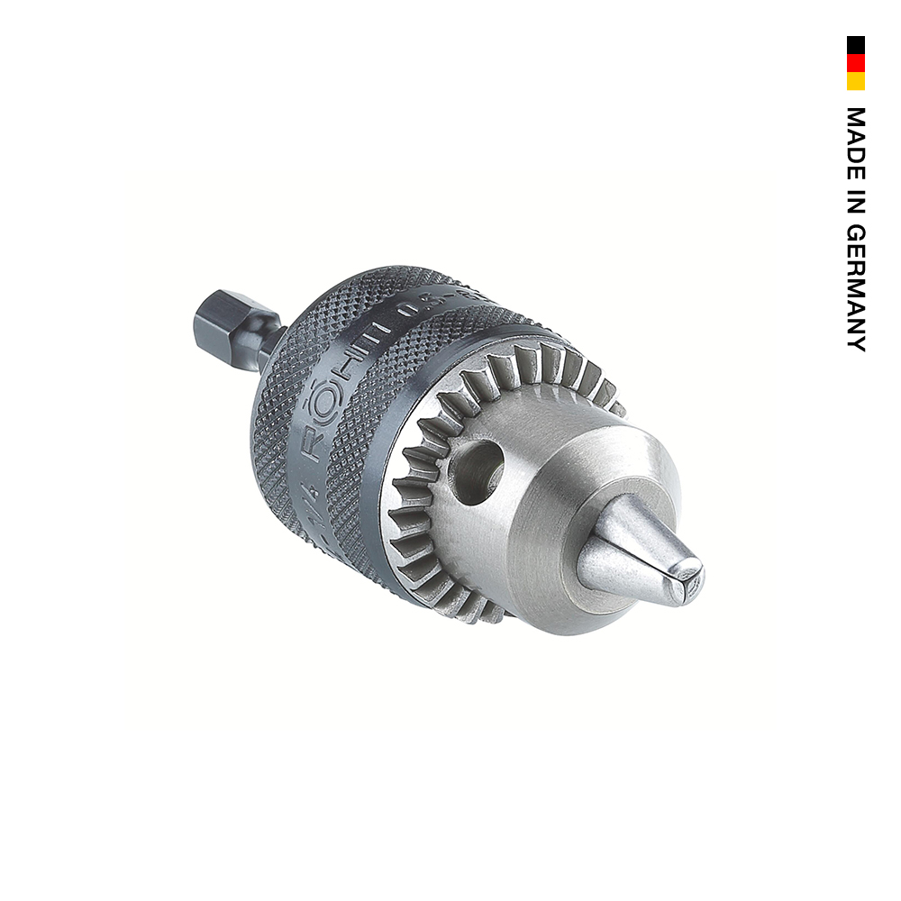 - 1x Röhm Zahnkranz-Bohrfutter PRIMA, Größe 6L, Aufnahme 1/4" Hex, Spannweite 0.5-6.5