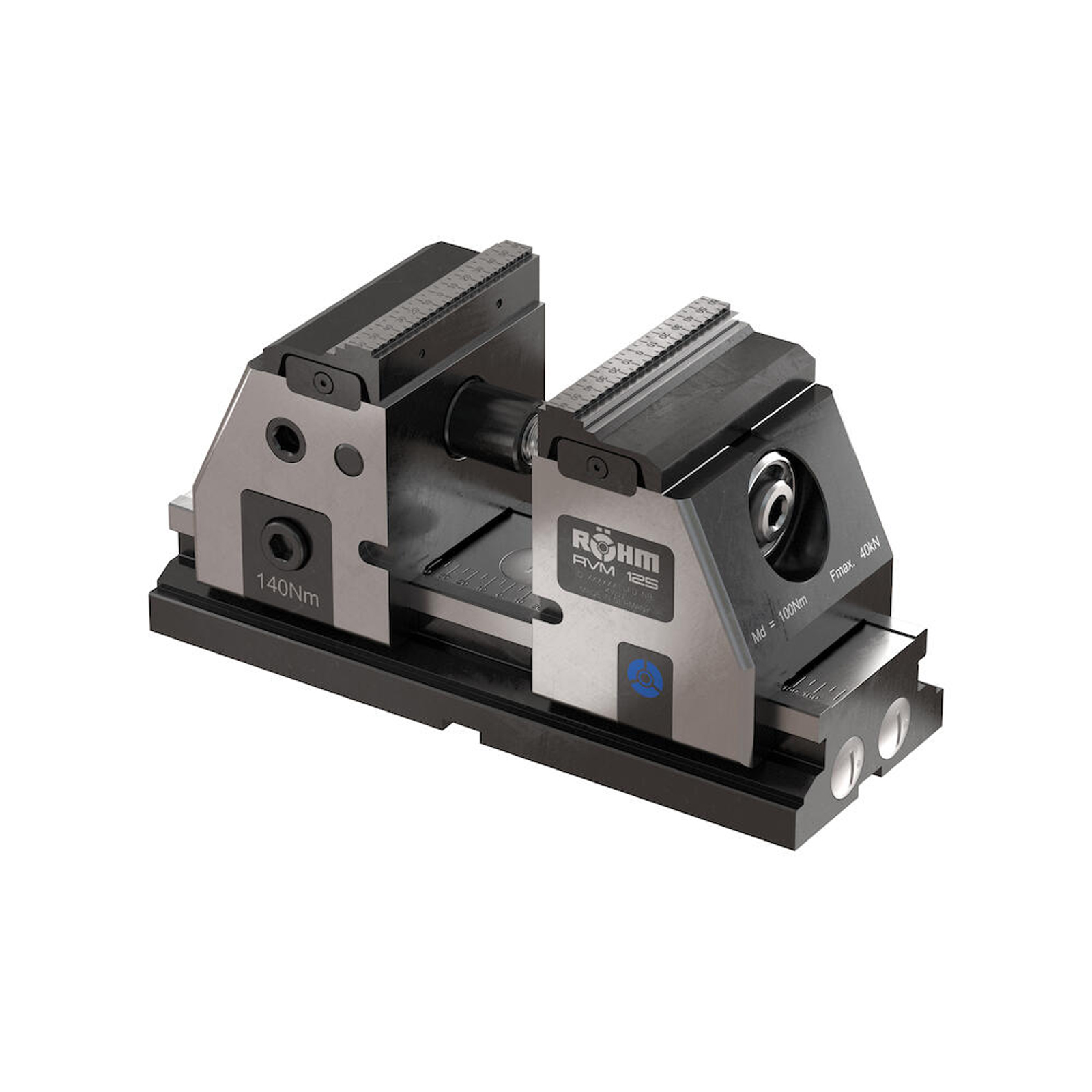- Zentrisch spannend mit zwei beweglichen Backen.