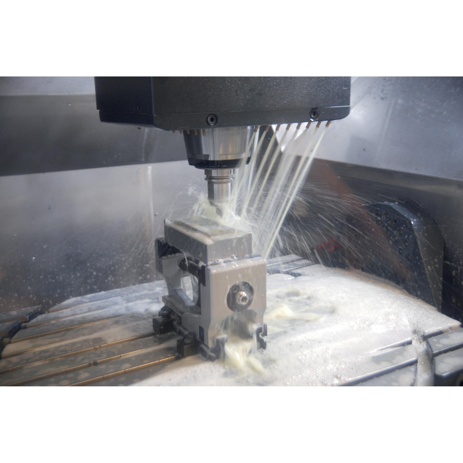 - Offen konzipiert für optimalen Späneabfluss, welcher selbst bei Schwerzerspanung eine einfache Reinigung gewährleistet