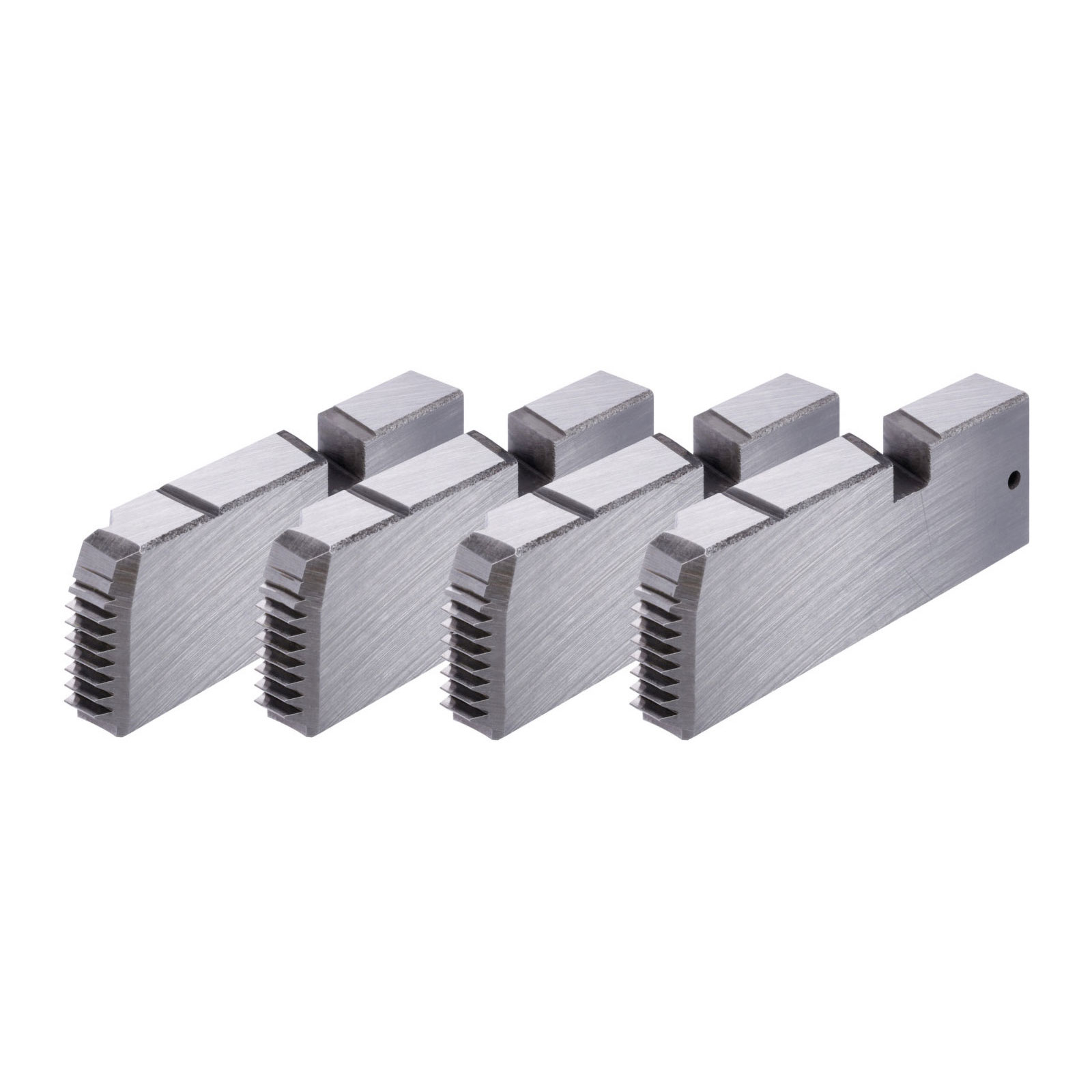 Die Gewindeschneidbacken, BSPT R 1-1.1/2 Zoll, ermöglichen präzises Gewindeschneiden nach EN 10226 (DIN 2999). Perfekte Technik, hohe Materialqualität und präzise Verarbeitung garantieren leichtes Schneiden, saubere Gewinde und extrem hohe Standzeiten mit hervorragendem Späneablauf. Aus hochwertigem, vergütetem Stahl.