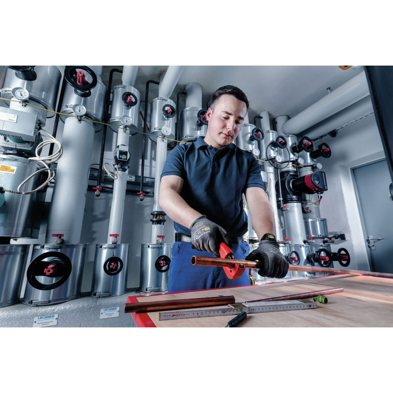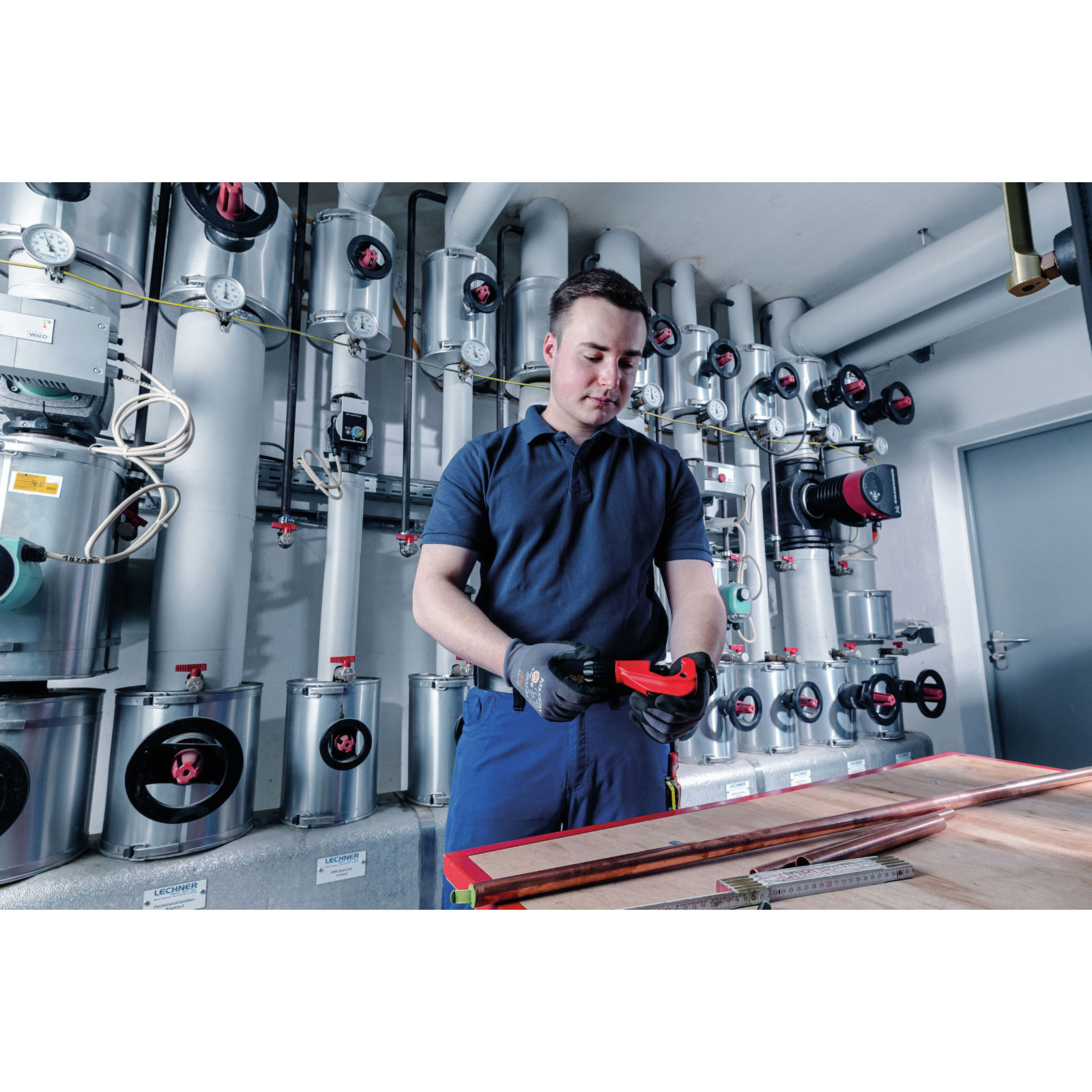 Display mit Rohrabschneidern zum Trennen von Kupfer-, Messing-, Aluminium und dünnwandigen Stahlrohren mit Ø 6-35mm.
