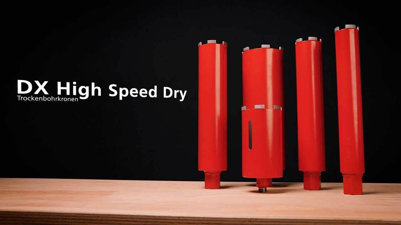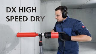 Installateure, Servicetechniker oder Elektriker können mit dem Handgeführten- oder stationären Kernbohrsystem und unter Einsatz der DX High Speed Dry Diamant-Bohrkrone, schnell und problemlos, Bohrungen in Stahlbeton, Mauerwerk oder Kalksandstein bis zu einer Tiefe von 330 mm ohne Verlängerung erzeugen.