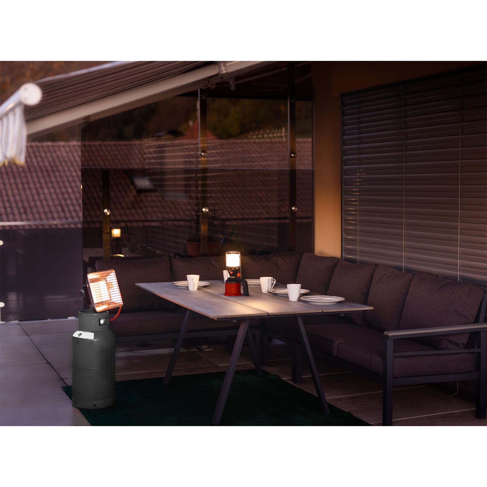 Der Gasheizstrahler schafft eine angenehme Atmosphäre und eignet sich ideal für kleine Gartenpartys und andere Outdoor-Events.
