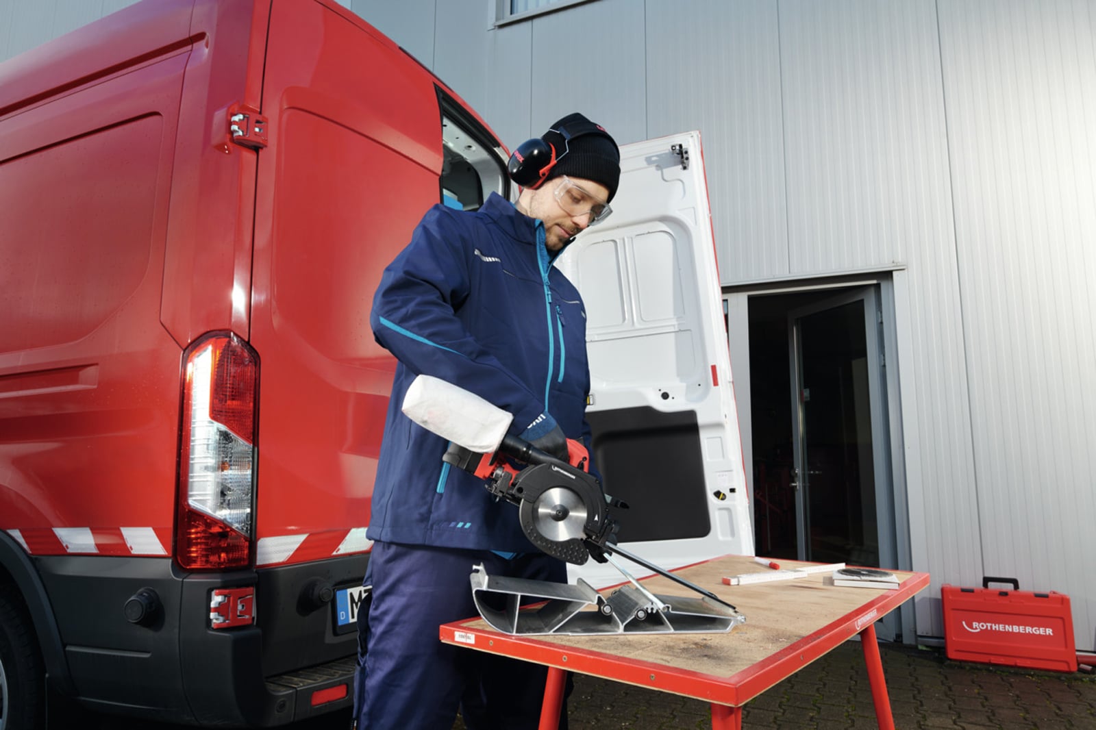 - Kupfer, Kunststoff, Mehrschichtverbundrohr, C-Stahl, Guss, Edelstahl können bis zu einem Rohrdurchmesser von 110 mm zuverlässig rechtwinklig geschnitten werden