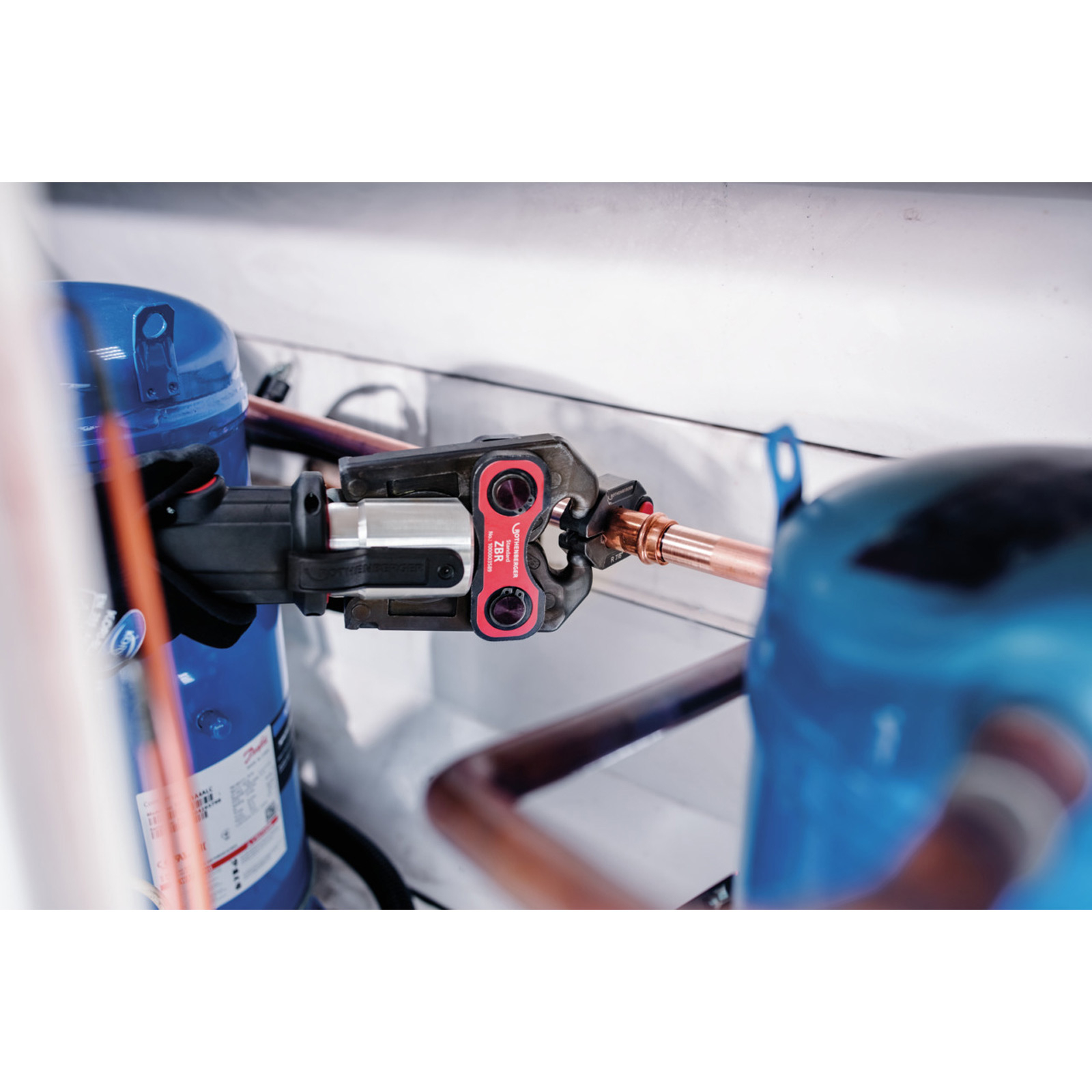- Die Pressringe sind unter anderem geeignet für die ROMAX Compact TT oder ROMAX 4000 Maschinen mit konstanter, axialer Schubkraft von 19 kN oder 32 kN und kompatibler Pressbackenaufnahme.