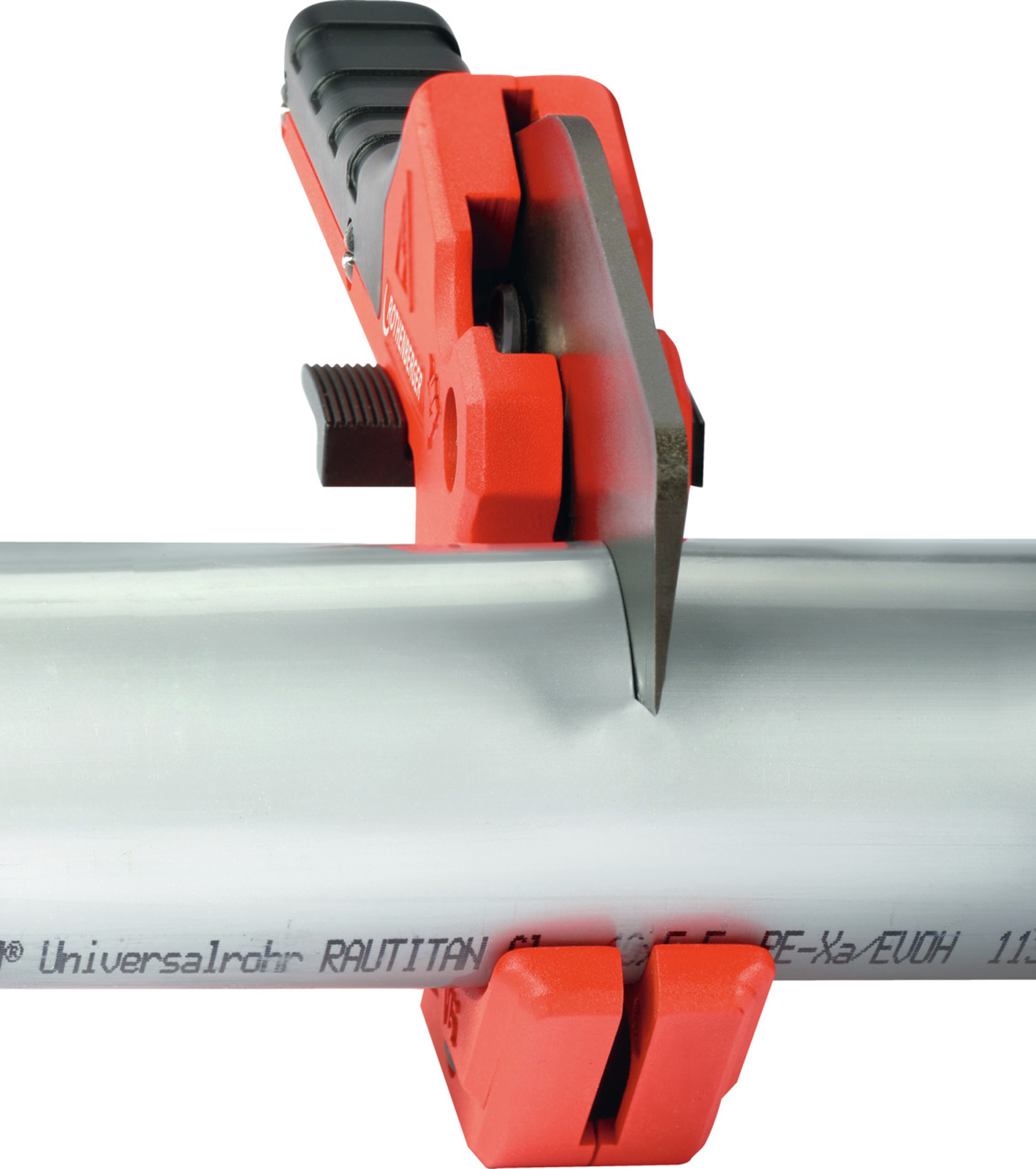 Schere zum Trennen von allen gängigen Kunststoffrohren mit einem Durchmesser von 0–42 mm.