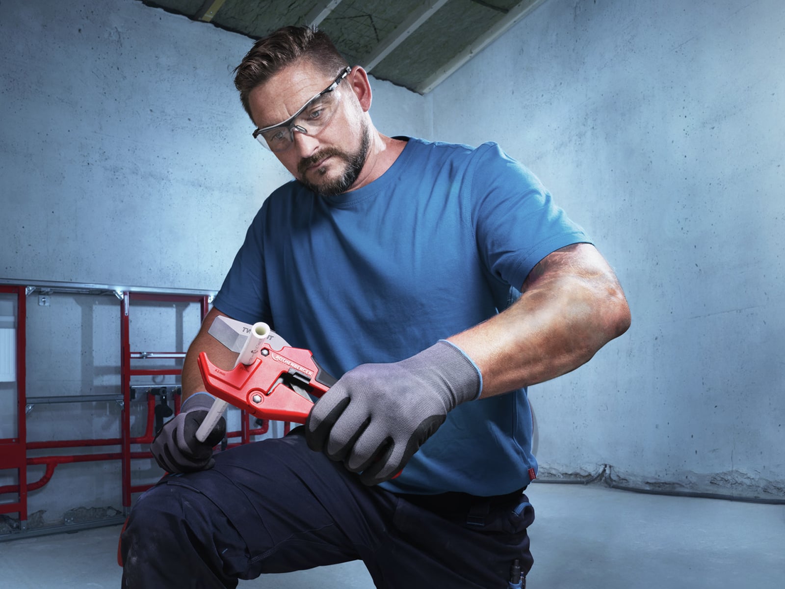 Mit der ROCUT 42 Twin Cut können Sie saubere und gerade Schnitte schneller und mit noch weniger Aufwand bei allen gängigen Kunststoffrohren im Bereich bis zu 42 mm durchführen
