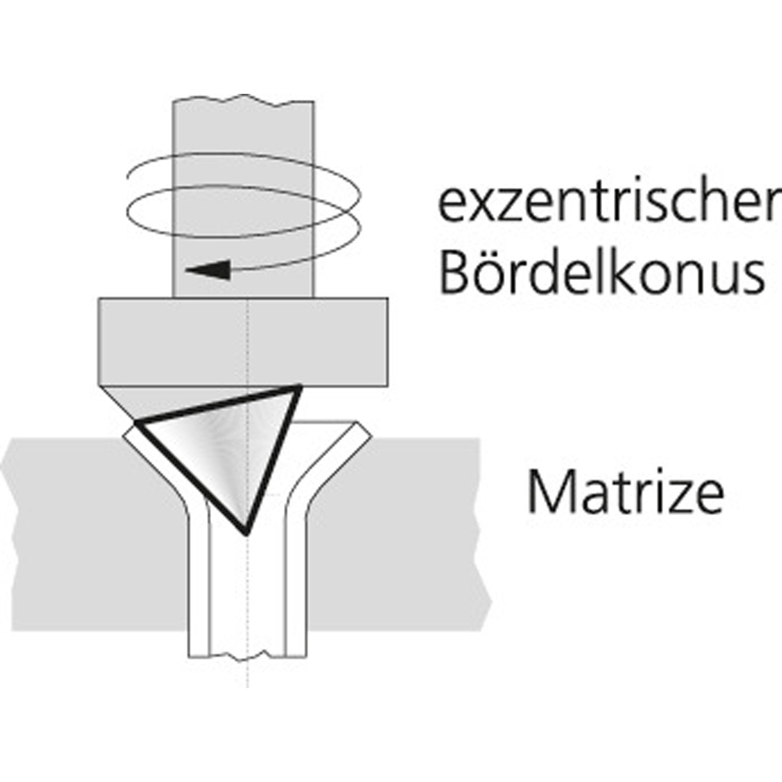 - Automatischer Tiefenanschlag: Perfekte Positionierung des Rohres zum Bördelkonus