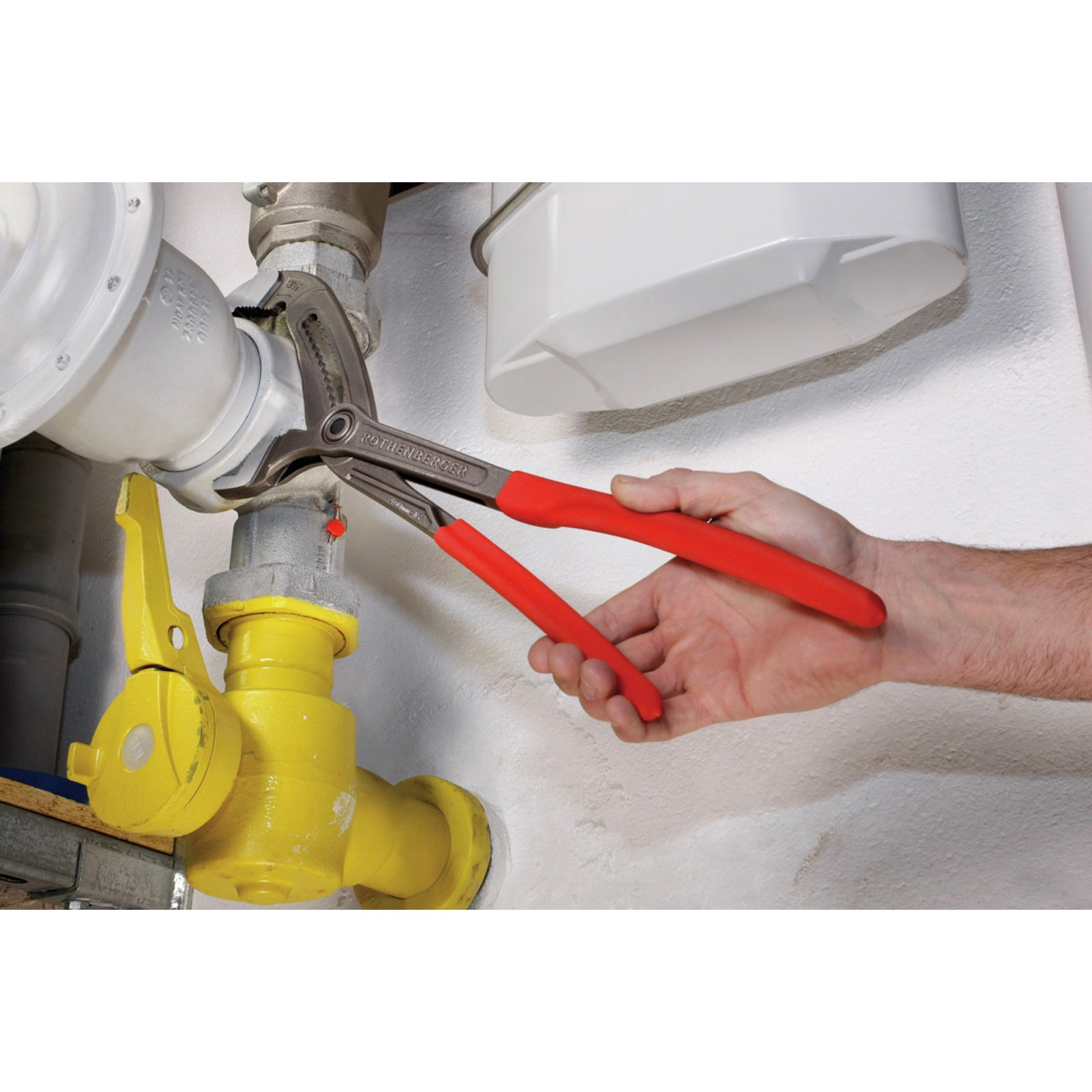 - ROTHENBERGER Curve-Shape-Design: besonders ergonomisch bei großen Rohrdurchmessern. Reduziert die Einklemmungsgefahr der Finger