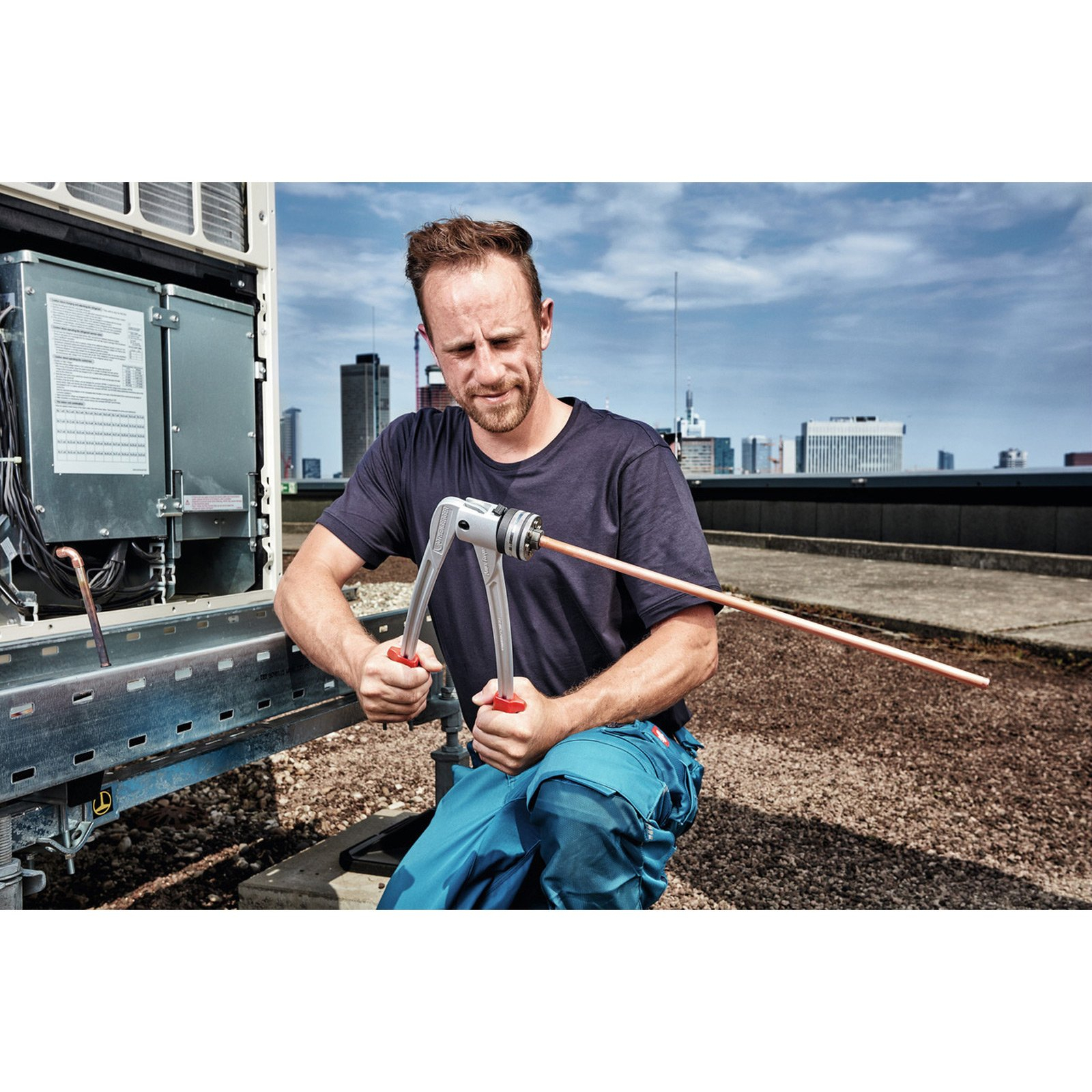 - Zum Aufweiten und Kalibrieren von weichen und halbharten Rohren Ø 3/8-1/2-5/8-3/4-7/8-1.1/8-1.3/8” sowie zur Herstellung von Reduzierungen