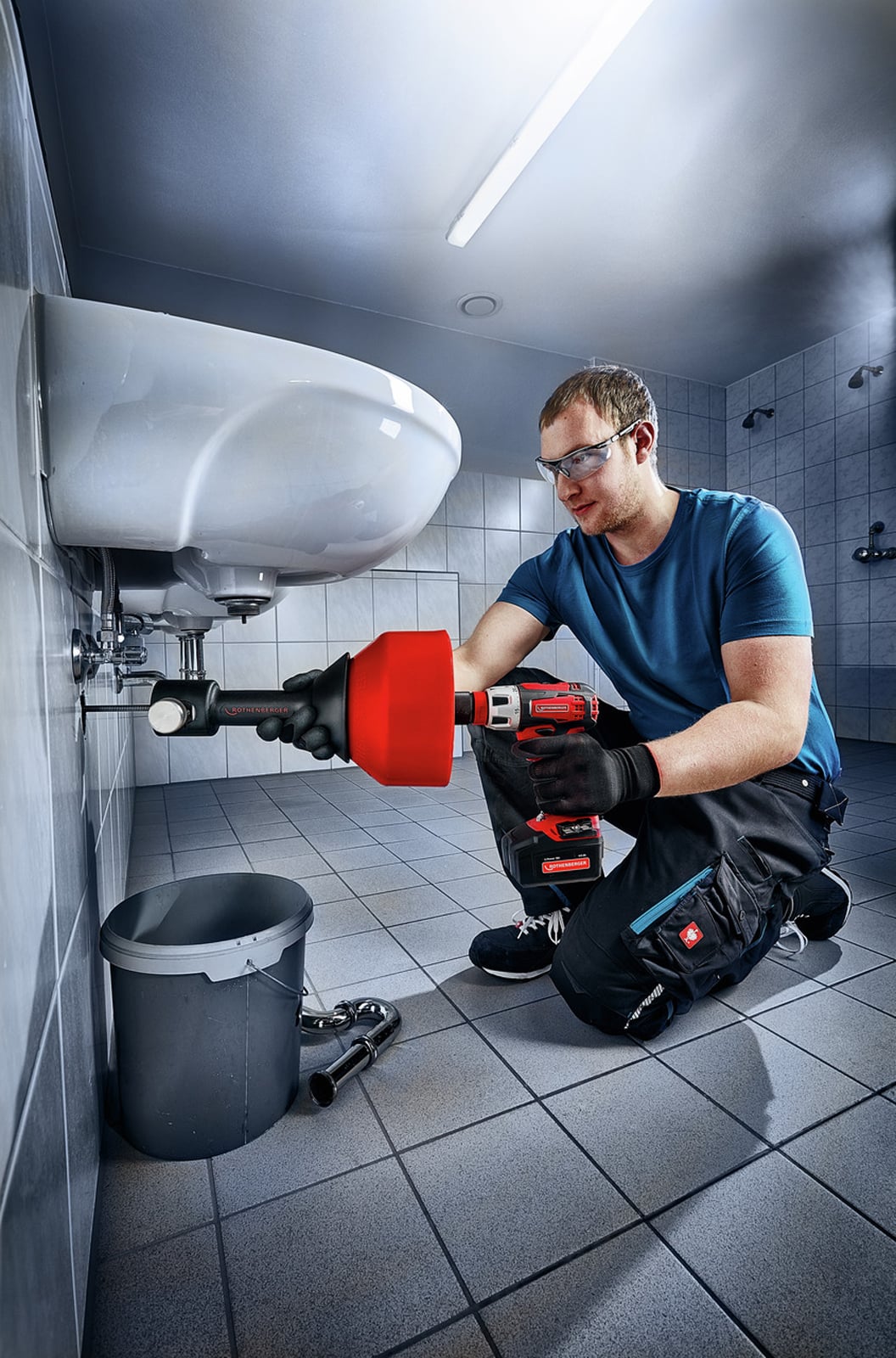 Beseitigung von Verstopfungen in Anschlussleitungen von Waschbecken und Dusch- oder Badewannen bis 50 mm Durchmesser.