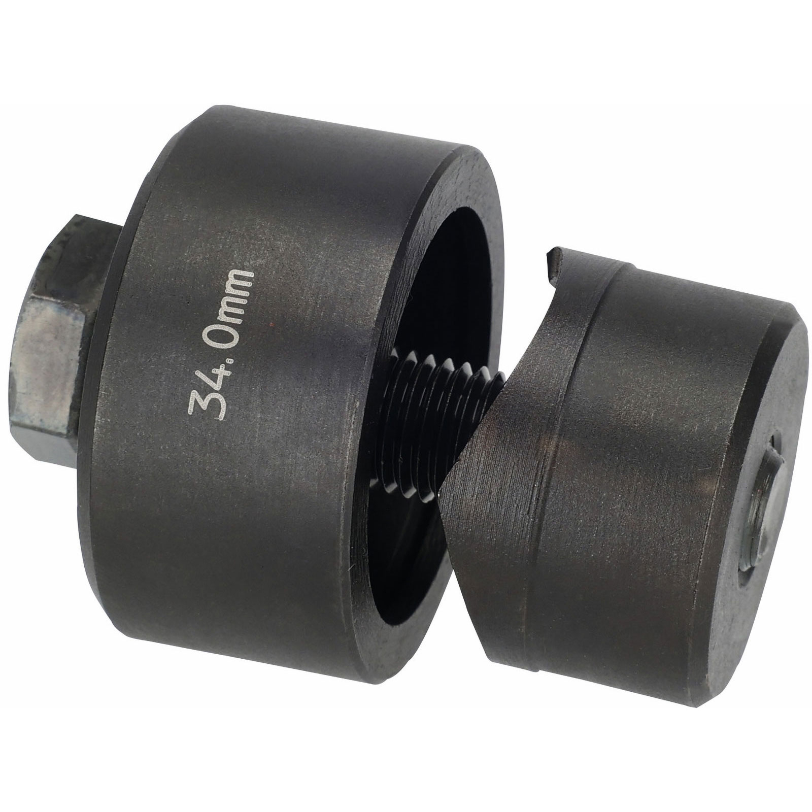 Schraublocher zum gleichmäßigen, deformationsfreien Stanzen von Blechen wie Stahl, V2A, Kupfer und Aluminium mit Ø 34mm.