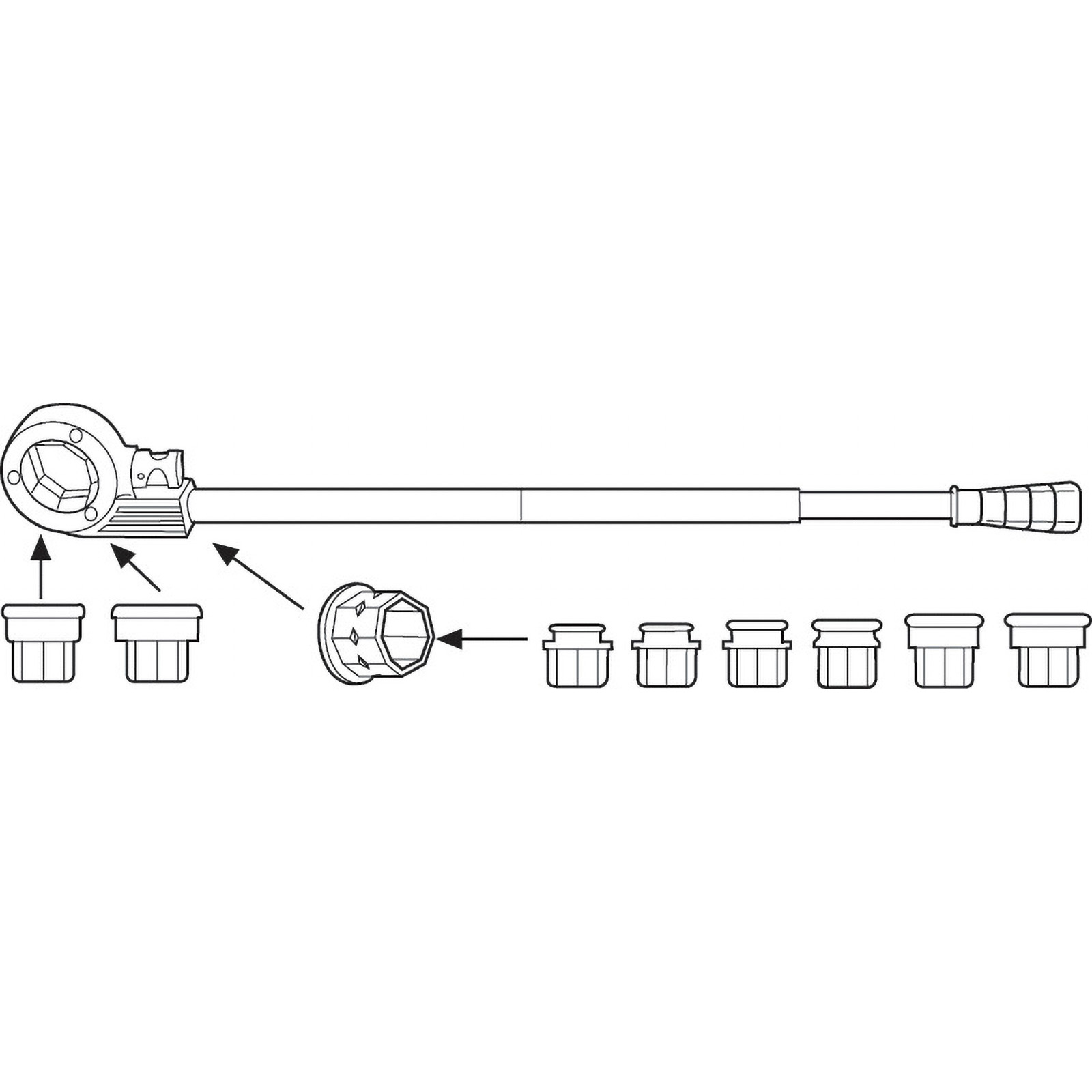 - Leichtes Arbeiten an schwer zugänglichen Stellen durch außermittigen Handhebel, Ratschenwinkel von 22,5°