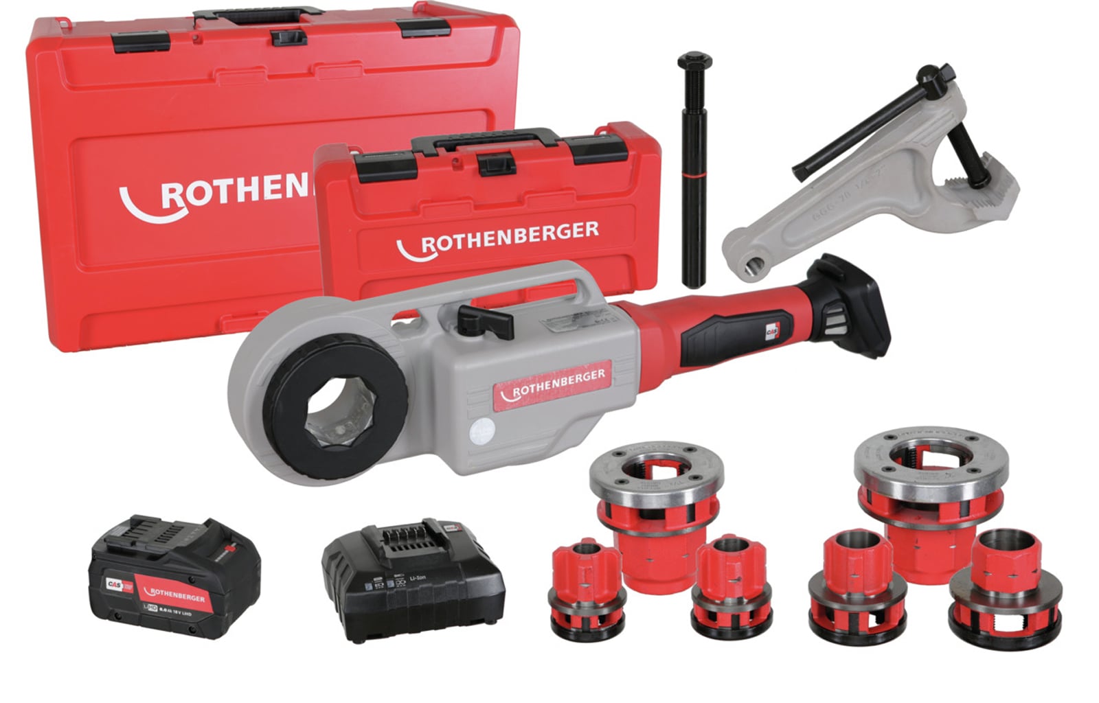 "ROTHENBERGER SUPERTRONIC 2000 E Set, mit Gegenhalter, Akku Li-Power 18/4 (4Ah/18V), Ladegerät EU und BSPT R, 1/2"-3/4"-1"-1.1/4"-1.1/2"-2" - 1000003389"