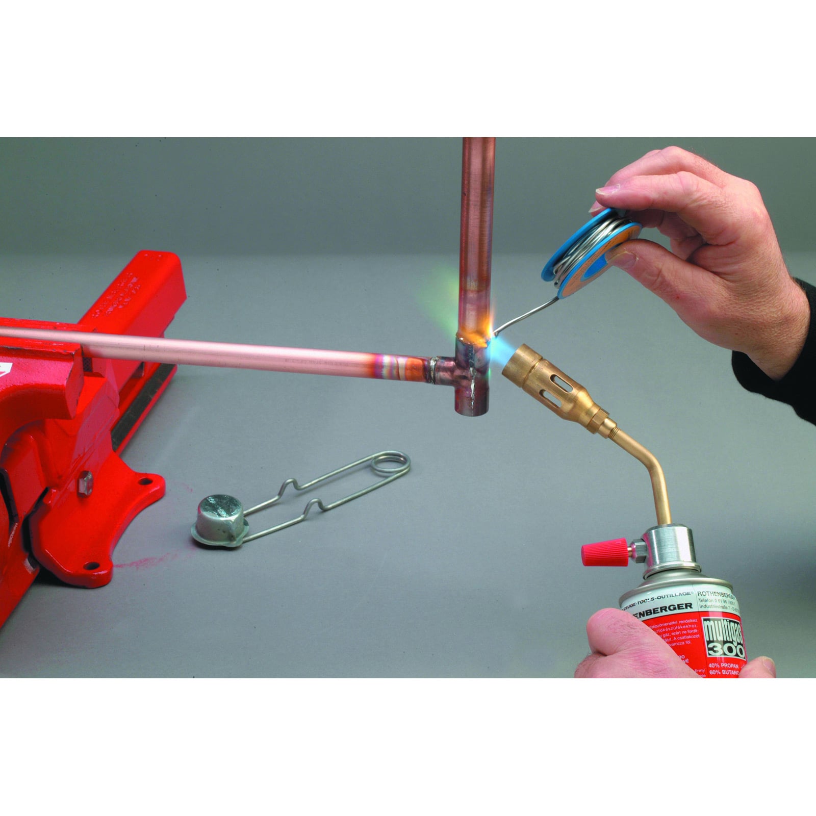 1x ROTHENBERGER Industrial Ergonomischer Sicherheits-Handgriff mit fixierter Pilotflamme – M 14 x 1/G 3/8“ L1x ROTHENBERGER Industrial Brennerbiegung mit Sicherheits-Konus-Abdichtung1x ROTHENBERGER Industrial DVGW-geprüfter Flüssiggasregler 4 bar, 8 kg/h1x ROTHENBERGER Industrial DVGW-geprüfte Schlauchleitung 2 m1x ROTHENBERGER Industrial Turbobrenner Ø 28 mm1x ROTHENBERGER Industrial Punktbrenner Ø 14 mm1x ROTHENBERGER Industrial Lötbrenner Ø 22 mm1x ROTHENBERGER Industrial Weichlötkolben 250 g, Kupfer geschmiedet mit Aufstellvorrichtung1x ROTHENBERGER Industrial Lötkolbenvorsatz mit 2x Lötspitzen aus Kupfer1x ROTHENBERGER Industrial Sicherheitsanzünder1x ROTHENBERGER Industrial 50 mm Farbabbrenner-Vorsatz1x ROTHENBERGER Industrial Brennerstütze, 1x ROTHENBERGER Industrial Sechskantmaulschlüssel