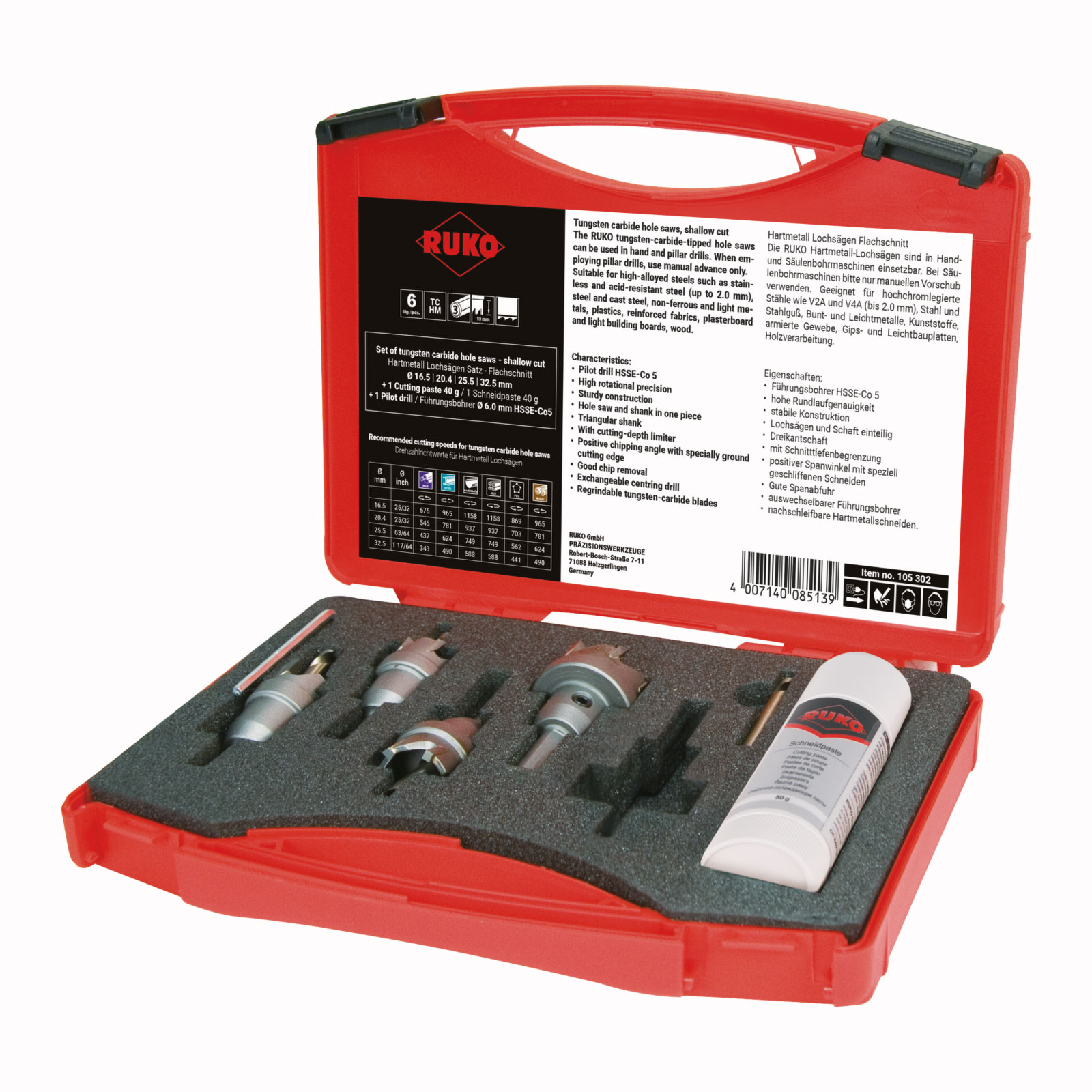 "RUKO Hartmetall-Lochsägen Flachschnitt-Satz im Kunststoffkoffer - 105302"
